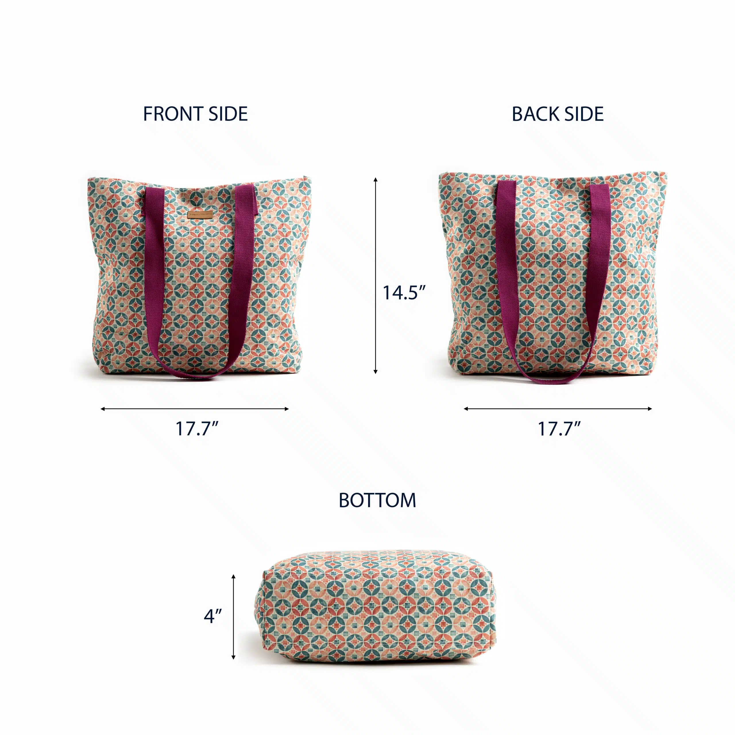 Package Includes: 1 canvas tote bag made of 100% cotton measures Length – 17.7 Inch Height – 14.5 Inch, Width – 4 Inch.