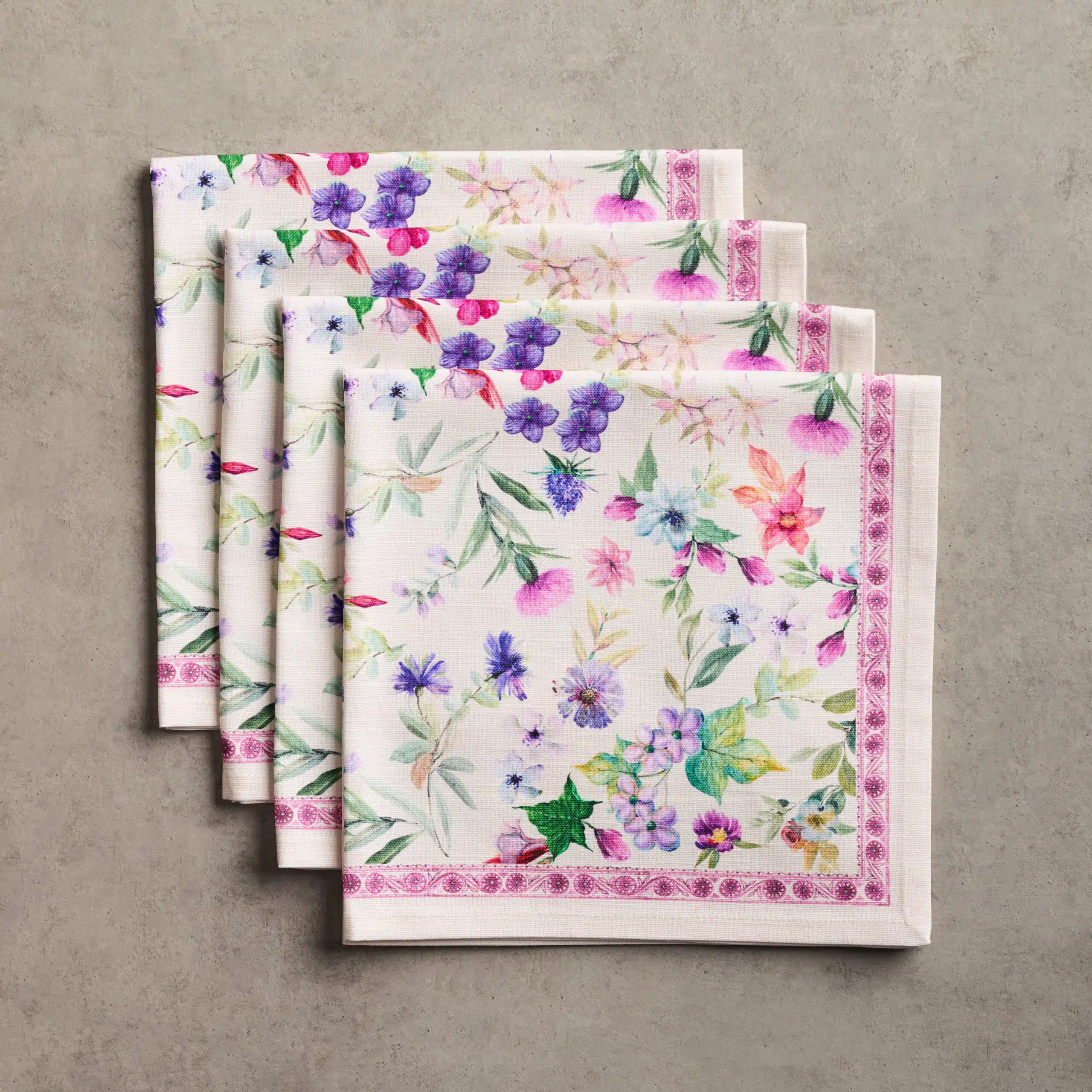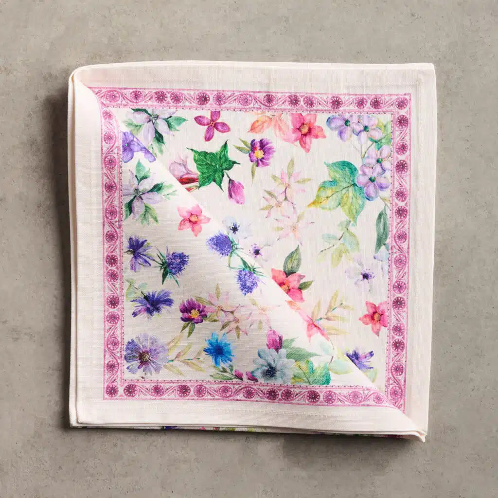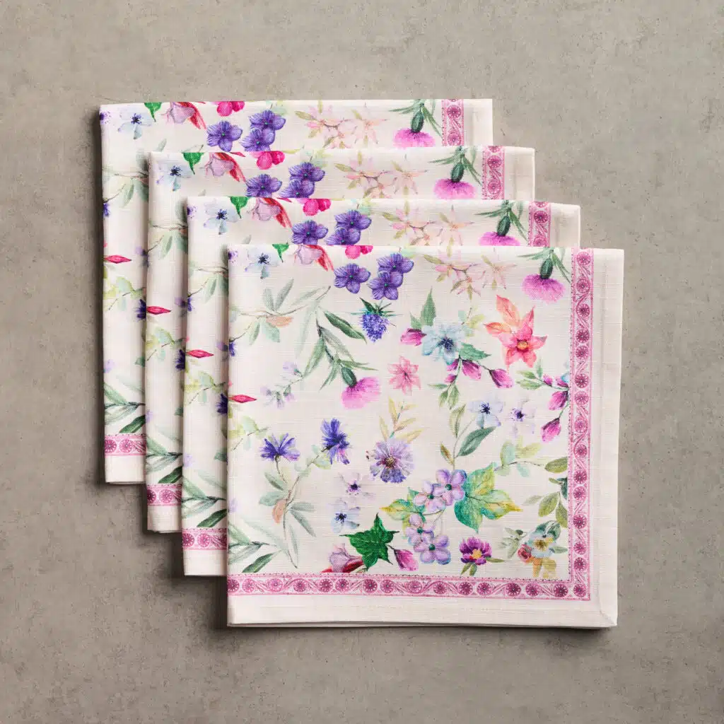 • Package Includes: Set of 4 Napkins sized 20″x20″. The napkins will certainly Bring lovely charm to your dining experience. Made with 100% Cotton fabric these dinner napkins are soft cloth napkins which provide a light but cozy feel to your dining table. Our products are Designed in Europe and Made in India.