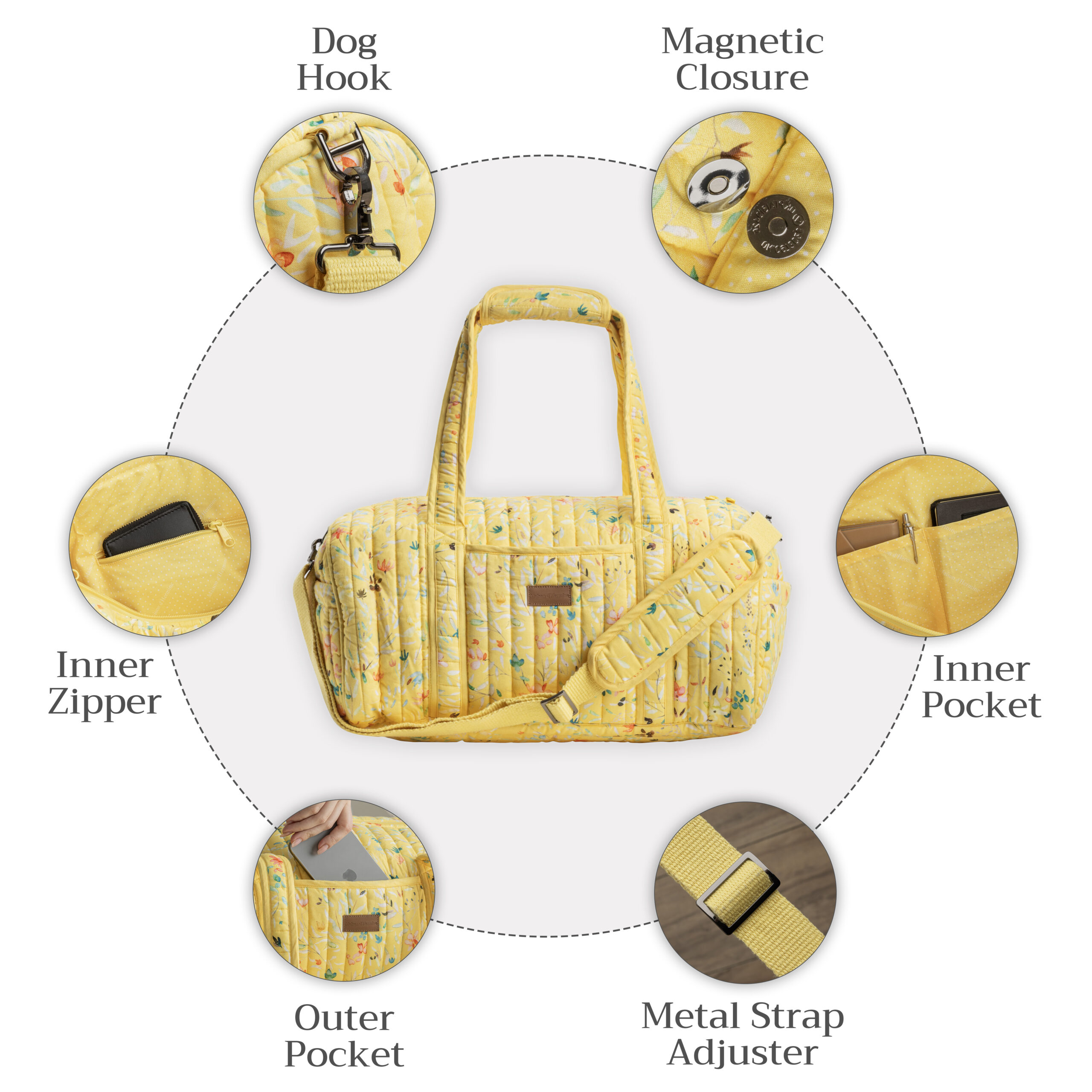 • Find Your Design: From delicate florals and whimsical birds to exotic animals and timeless block prints, choose from an array of stunning designs. No matter your style—classic, bold or somewhere in between, there’s a Maison d’Hermine duffel bag waiting to complement your journey