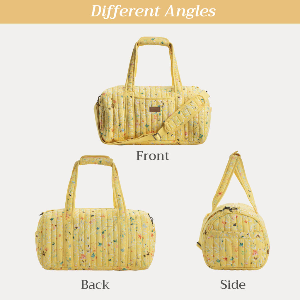 • Soft & Endlessly Durable: Crafted from premium 100% cotton, our duffel bag is as stylish as it is resilient. Quilted for softness and strength, it’s light as a whisper yet sturdy enough for life’s adventures, offering the perfect blend of elegance and endurance.