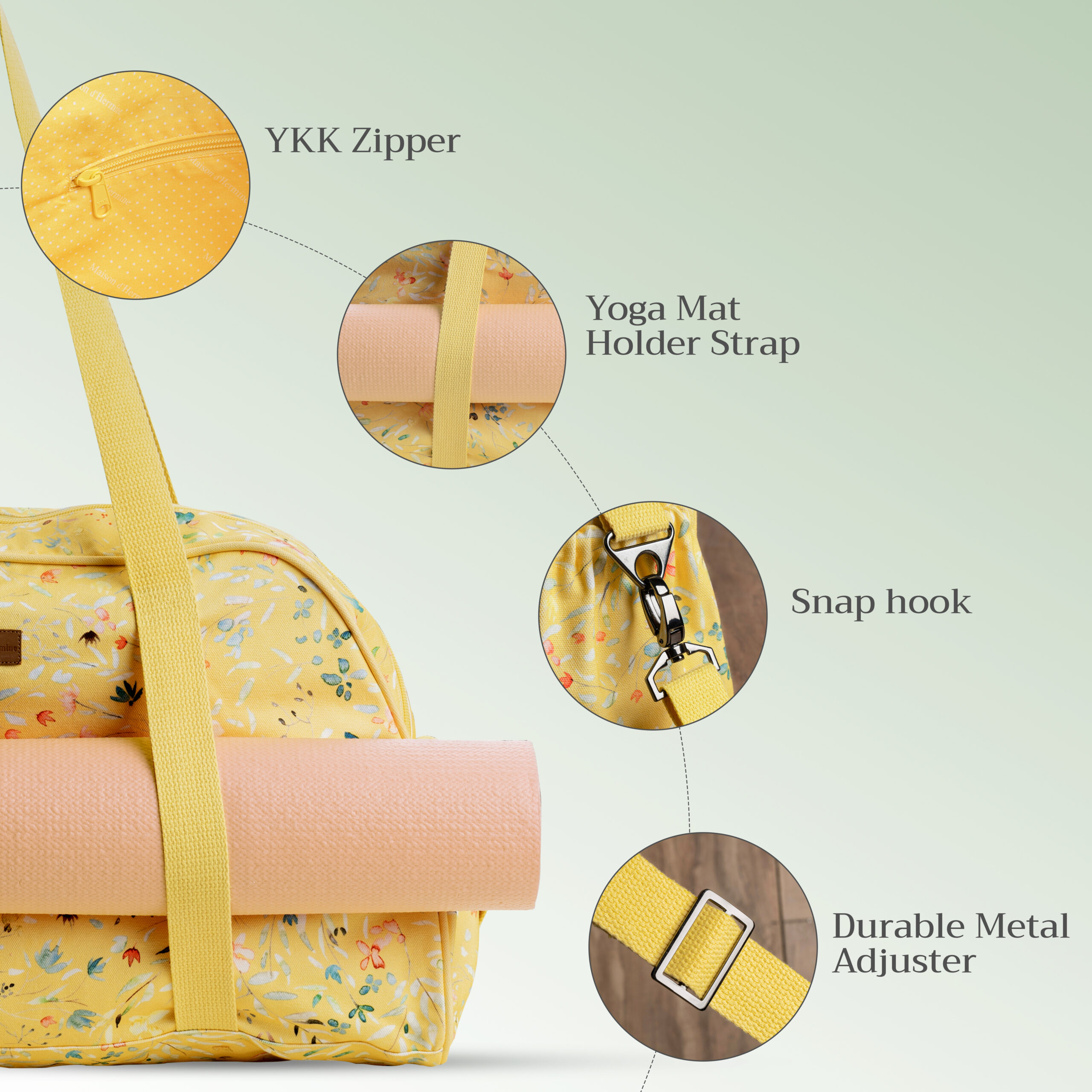 • Unique Designs: Express your personal style with our range of signature Maison d’Hermine designs. From pretty florals to bold prints in vibrant colors, there’s a yoga mat bag to match your look. Functional and fashionable, this bag is your new workout essential