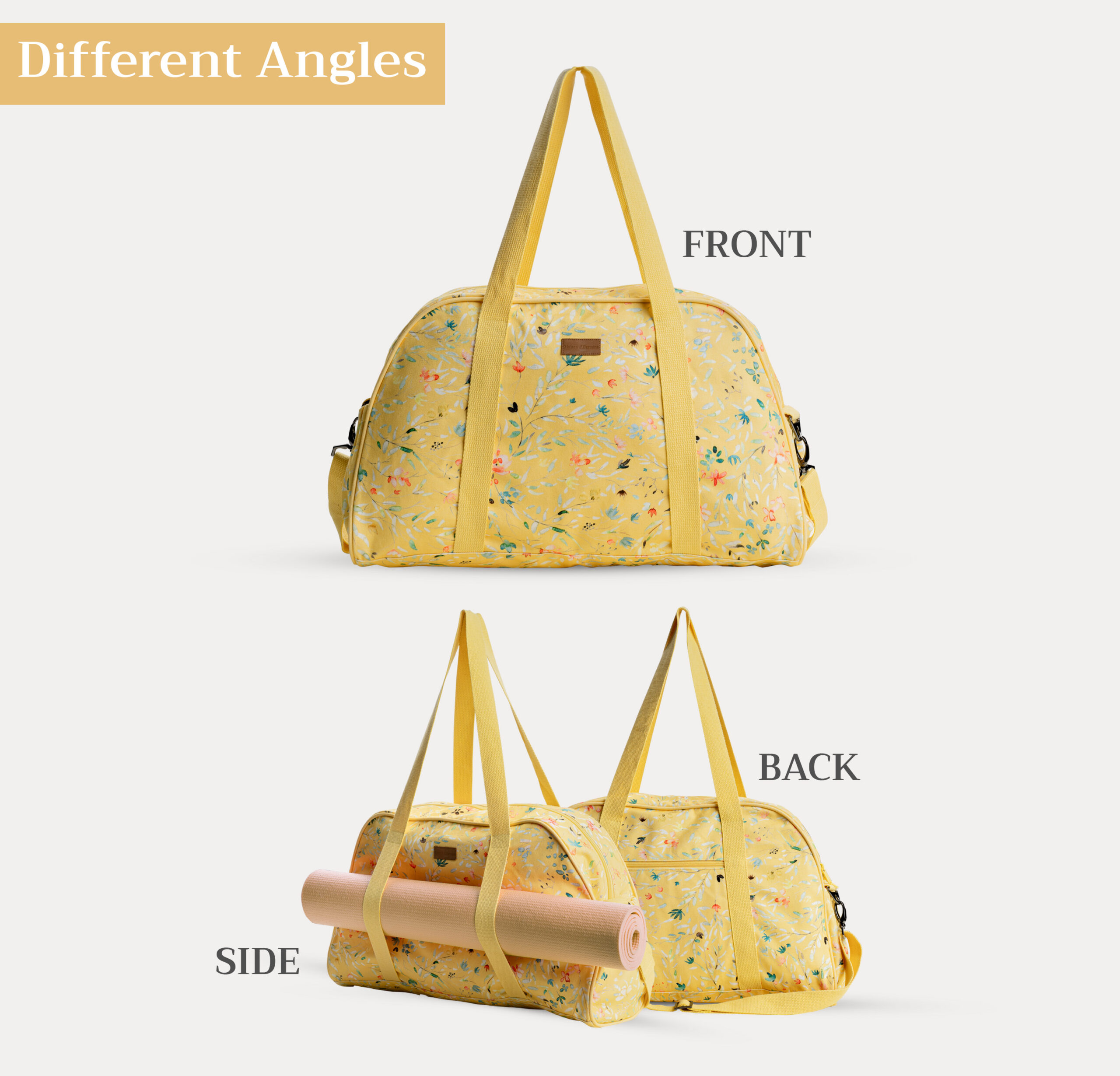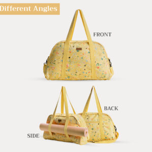 • Size: Measurings – 24” x 10” x 11”(Yoga Gym Bag) /  20.5” x 12” x 6.5”(Duffle Bag) /  27.5” long with a 6.5” diameter (Yoga Mat Bag) /26” x 10” x 6.5” (Yoga Mat Tote Bag) these yoga bags are designed for effortless portability, accommodating mats from ¼” to 1” thick. Its strong, adjustable twill tape strap ensures a comfy fit over your shoulder, meanwhile, handles allow it to be carried by hand. A zippered closure included. Yoga Mat not included.