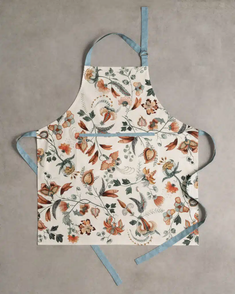 • Package Includes: 1 Apron with the long waist ties and an adjustable neck strap. Our kitchen apron has pockets in the centre which can give you enough place to hold grill slips, recipe, phone etc. Made from 100% cotton, each apron in this collection is just as elegant and charming it can be and brings out the spirit of the warm season in an artsy way. Our products are Designed in Europe and Made in India.