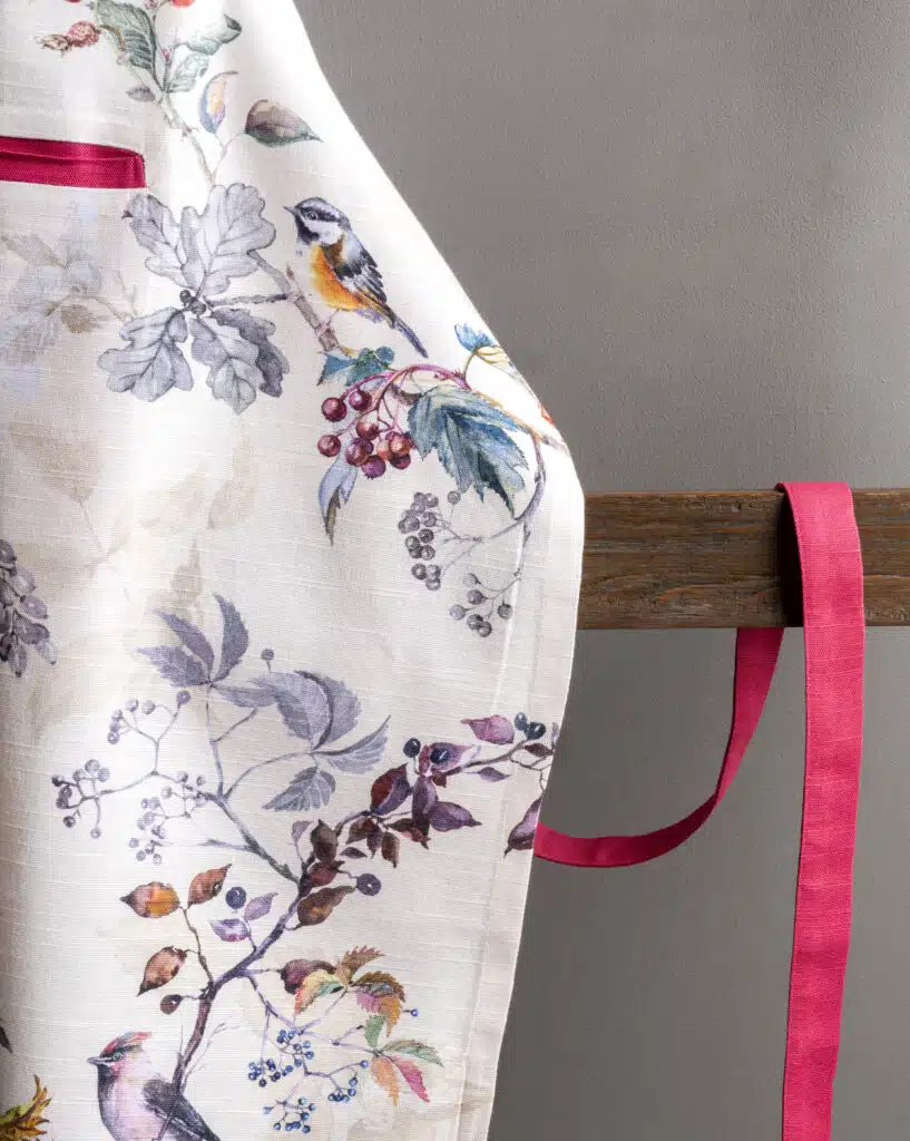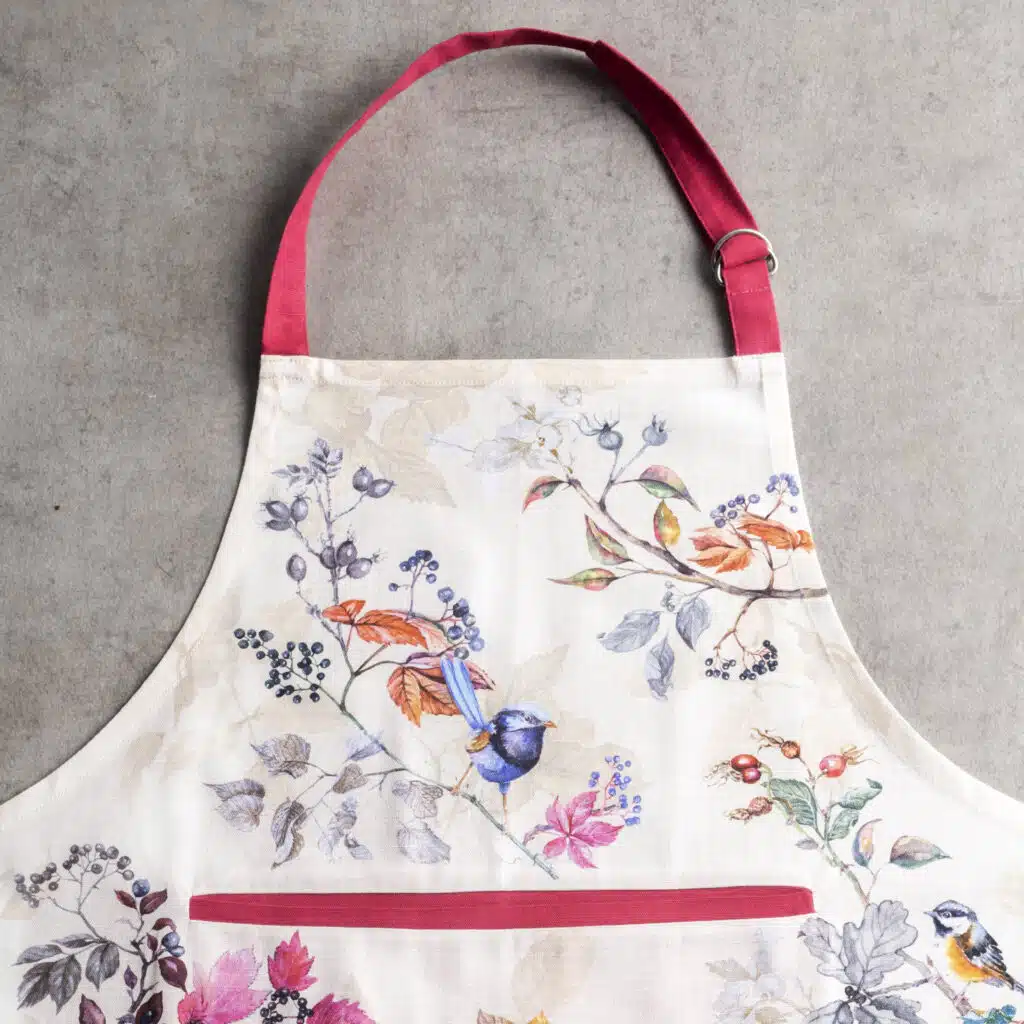 • Package Includes: 1 Apron with the long waist ties and an adjustable neck strap. Our kitchen apron has pockets in the centre which can give you enough place to hold grill slips, recipe, phone etc. Made from 100% cotton, each apron in this collection is just as elegant and charming it can be and brings out the spirit of the warm season in an artsy way. Our products are Designed in Europe and Made in India.