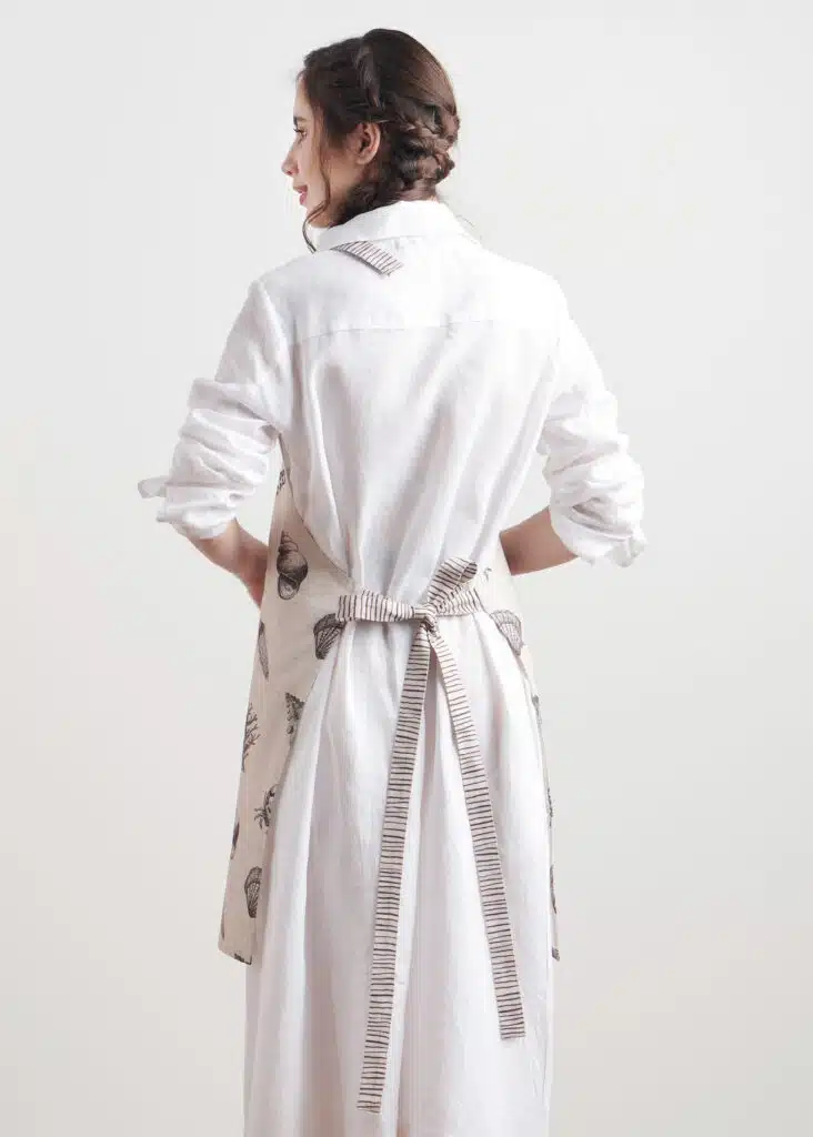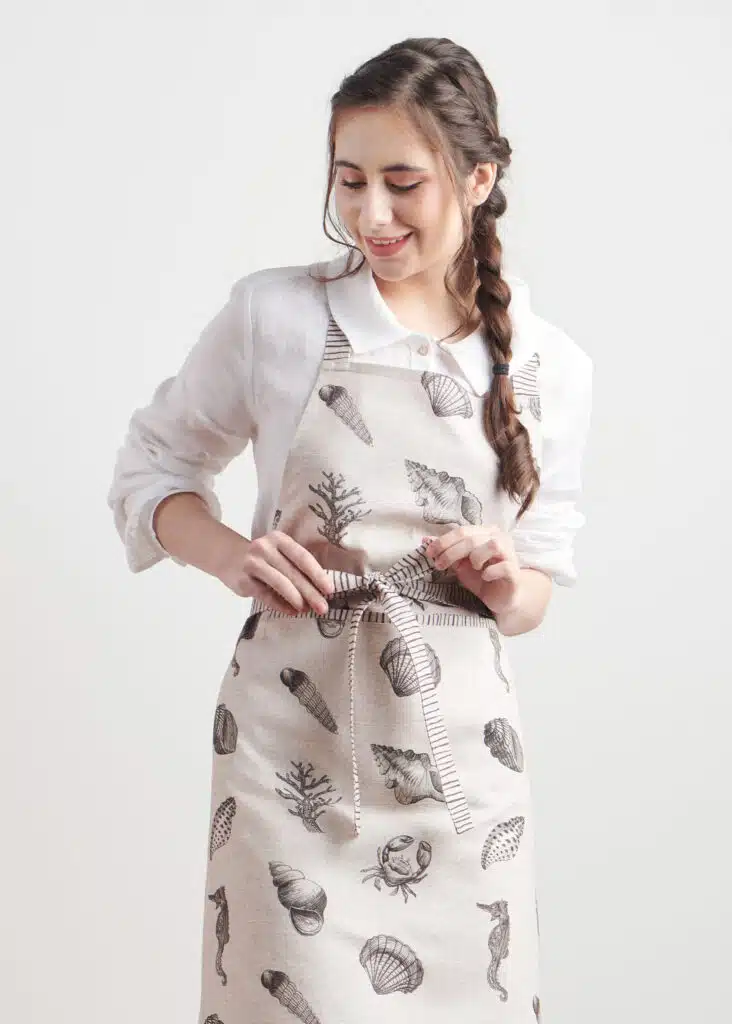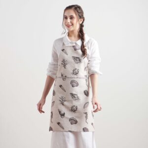 • Package Includes: 1 Apron with the long waist ties and an adjustable neck strap. Our kitchen apron has pockets in the centre which can give you enough place to hold grill slips, recipe, phone etc. Made from 100% cotton, each apron in this collection is just as elegant and charming it can be and brings out the spirit of the warm season in an artsy way. Our products are Designed in Europe and Made in India.