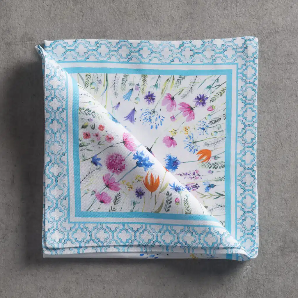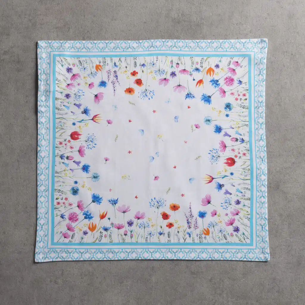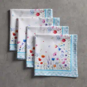 • Package Includes: Set of 4 Napkins sized 20″x20″. The napkins will certainly Bring lovely charm to your dining experience. Made with 100% Cotton fabric these dinner napkins are soft cloth napkins which provide a light but cozy feel to your dining table. Our products are Designed in Europe and Made in India.
