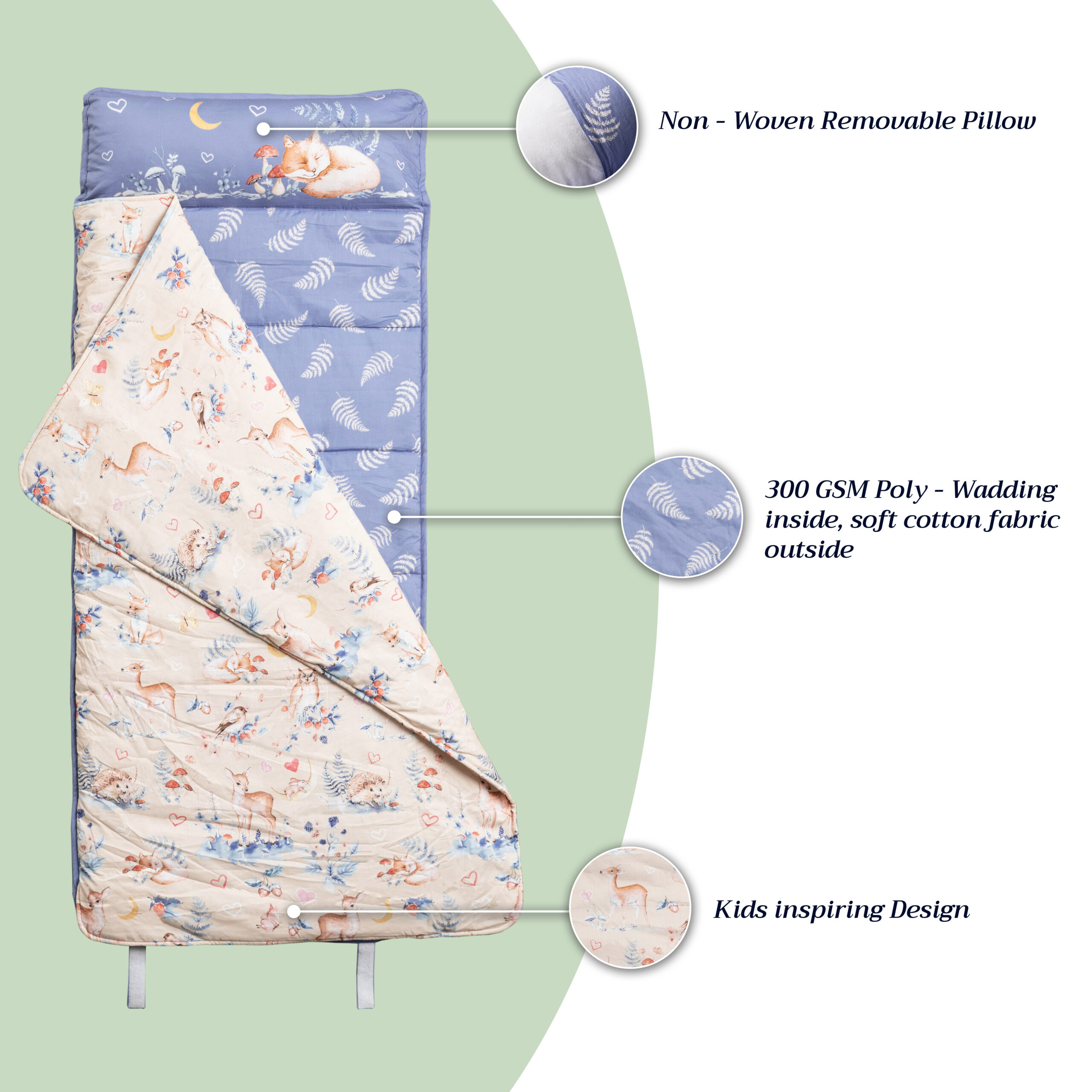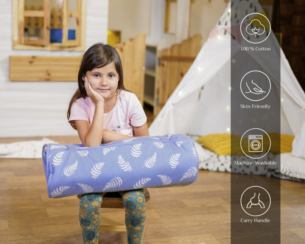 • Super Versatile– Naptime can be anytime, anywhere with Napmat. Use it at home, daycare, on picnics, sleepovers or even at the beach. It makes an adorable travel companion, ensuring your child rests comfortably wherever they are. Just roll up and go.