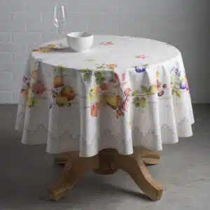 • Explore More: Discover our selection of coordinating round table linens, including aprons, napkins, and oven mitts, all in matching designs. Visit our store for additional round tablecloths and other stylish fabric tablecloths from Maison d’ Hermine to enhance your home décor.