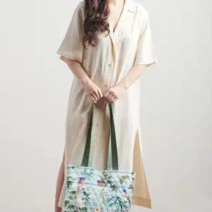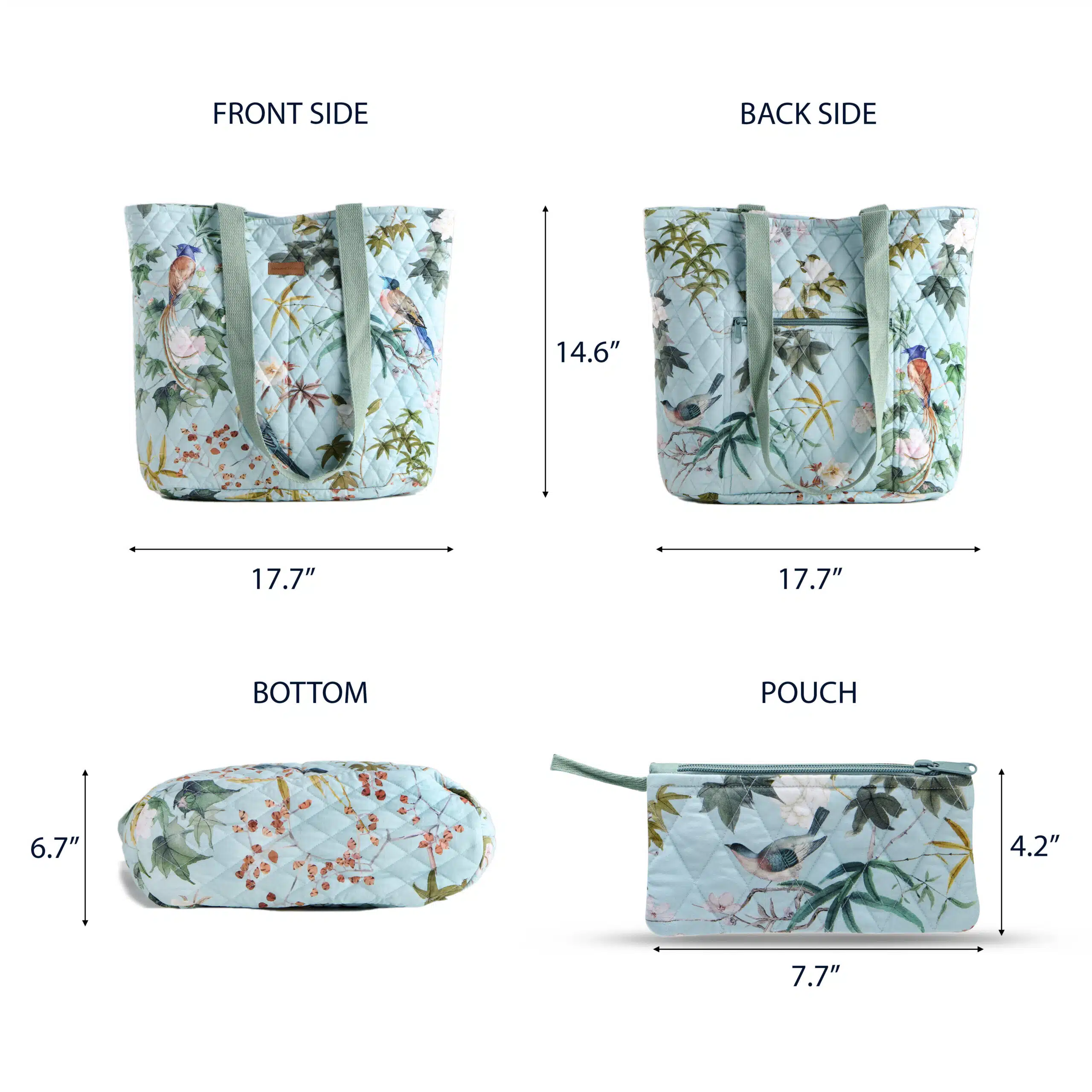 • Package Includes: 1 shopping bag with small pouch made of 100% cotton measures Length – 17.7 Inch Height – 14.6 Inch, Width – 6.7 Inch and pouch measure Length – 7.7 Inch, Height – 4.2 Inch.