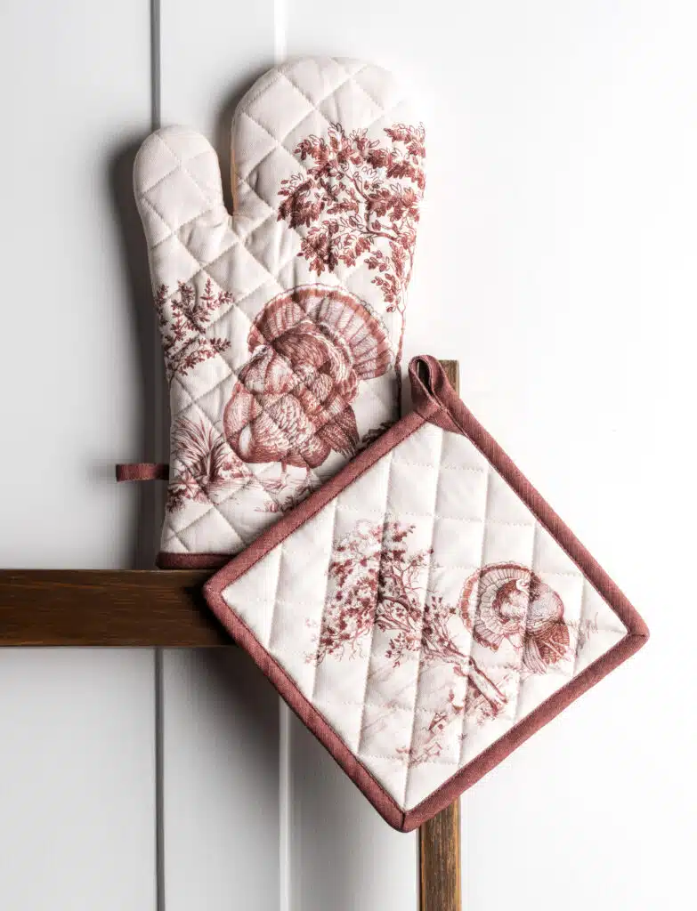 Package Includes: Maison d’ Hermine package includes 1 Oven Mitt sized 7.5″x13″ and 1 Pot Holder sized 8″x8″.