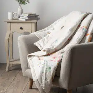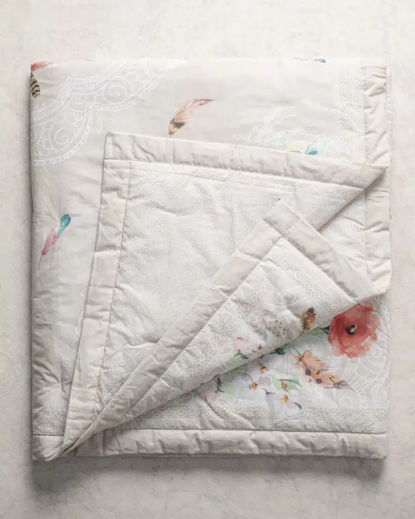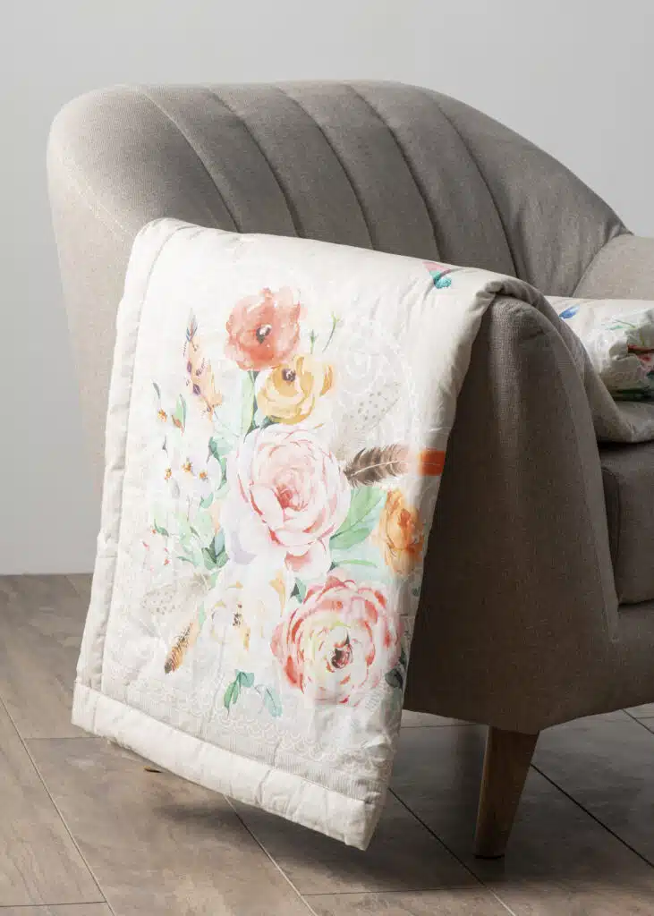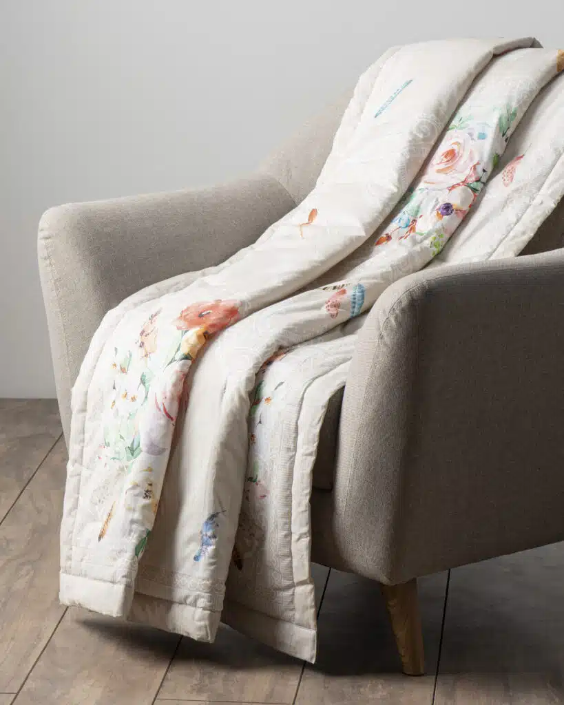 • Quality & Fabric:  The luxurious throw blanket’s outer fabric is made of high-quality 100% cotton, and the inner fabric is made of 100% polyester for durable use. They are lightweight and breathable and are almost as soft and warm as a wool blanket, which makes them a great alternative for people with sensitive skin.