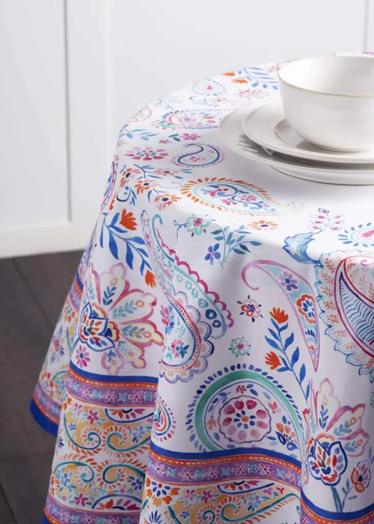 • Explore More: Discover our selection of coordinating round table linens, including aprons, napkins, and oven mitts, all in matching designs. Visit our store for additional round tablecloths and other stylish fabric tablecloths from Maison d’ Hermine to enhance your home décor.