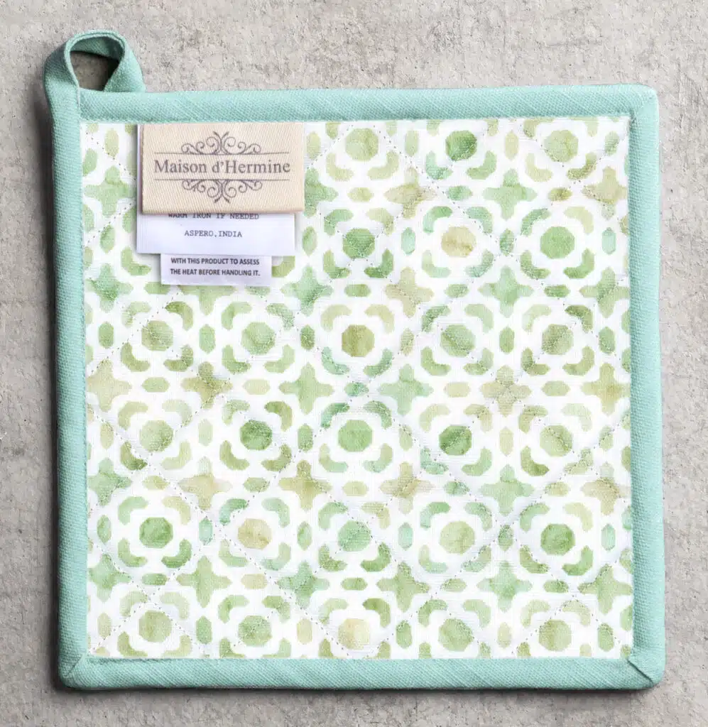 • Package Includes: Maison d’ Hermine package includes 1 Oven Mitt sized 7.5″x13″ and 1 Pot Holder sized 8″x8″.