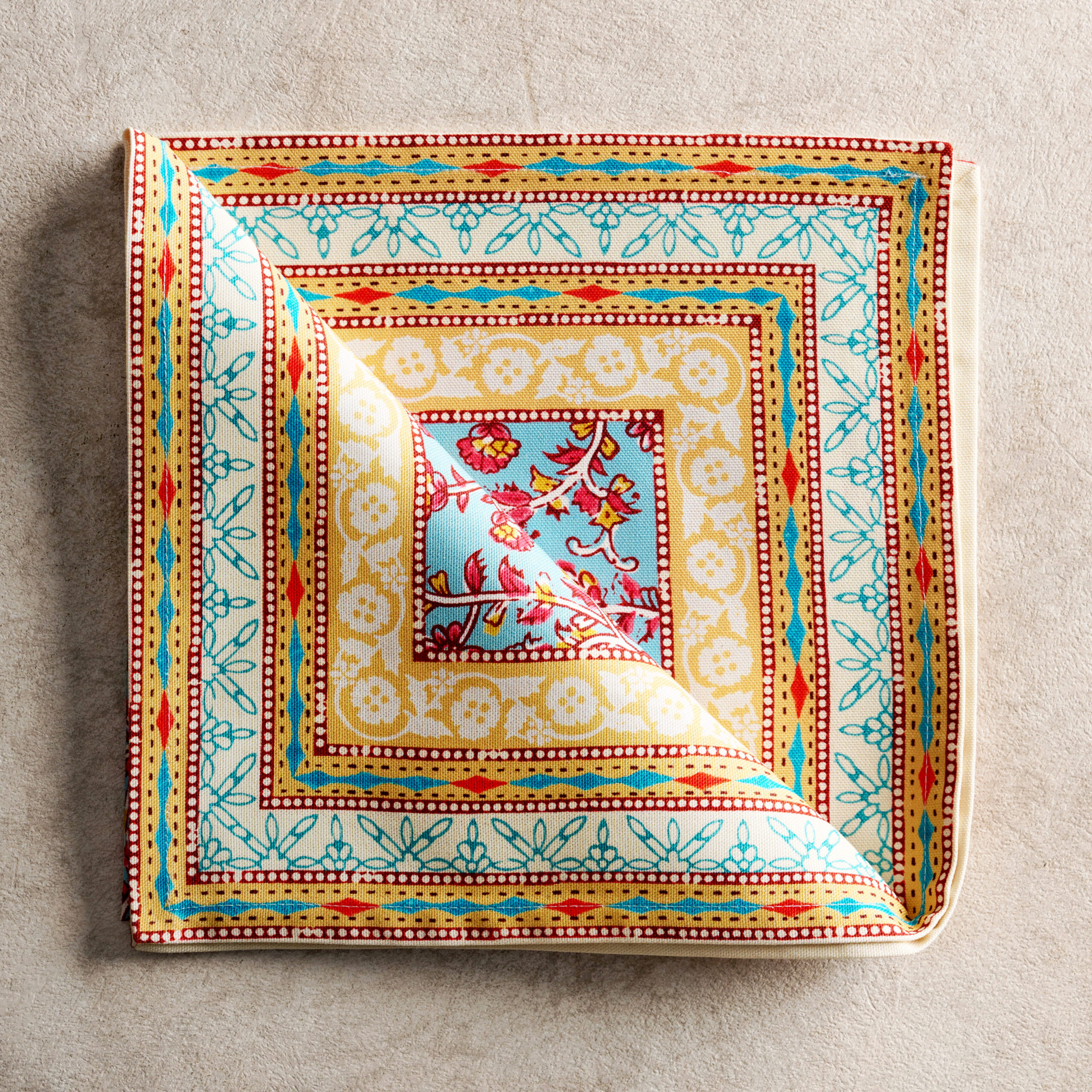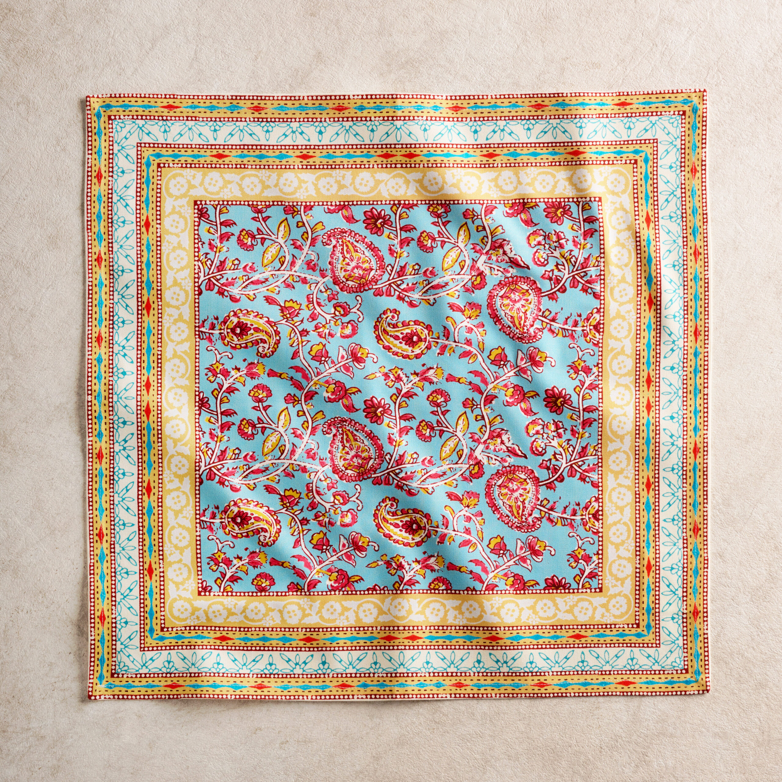 • Package Includes: Set of 4 Napkins sized 20″x20″. The napkins will certainly Bring lovely charm to your dining experience. Made with 100% Cotton fabric these dinner napkins are soft cloth napkins which provide a light but cozy feel to your dining table. Our products are Designed in Europe and Made in India.
