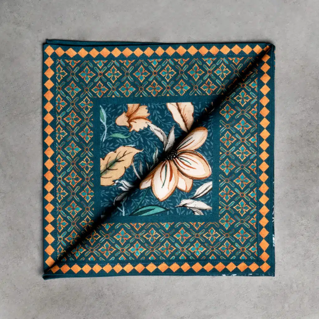 • Package Includes: Set of 4 Napkins sized 20″x20″. The napkins will certainly Bring lovely charm to your dining experience. Made with 100% Cotton fabric these dinner napkins are soft cloth napkins which provide a light but cozy feel to your dining table. Our products are Designed in Europe and Made in India.