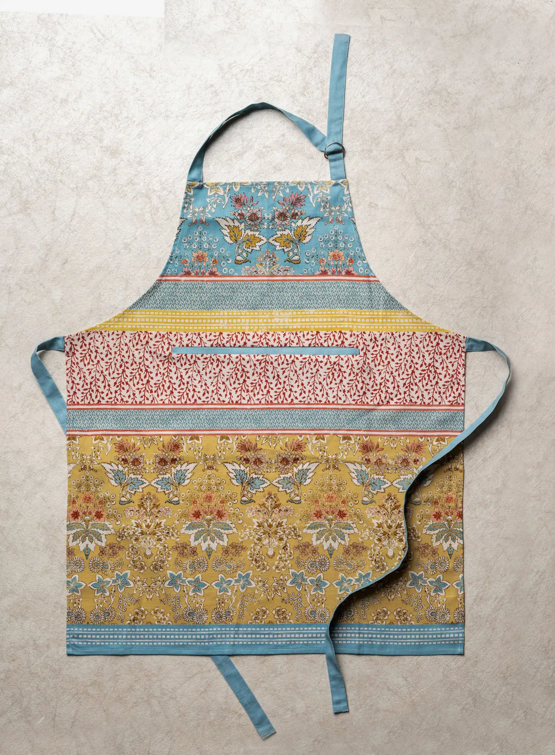 • Package Includes: 1 Apron with the long waist ties and an adjustable neck strap. Our kitchen apron has pockets in the centre which can give you enough place to hold grill slips, recipe, phone etc. Made from 100% cotton, each apron in this collection is just as elegant and charming it can be and brings out the spirit of the warm season in an artsy way. Our products are Designed in Europe and Made in India.