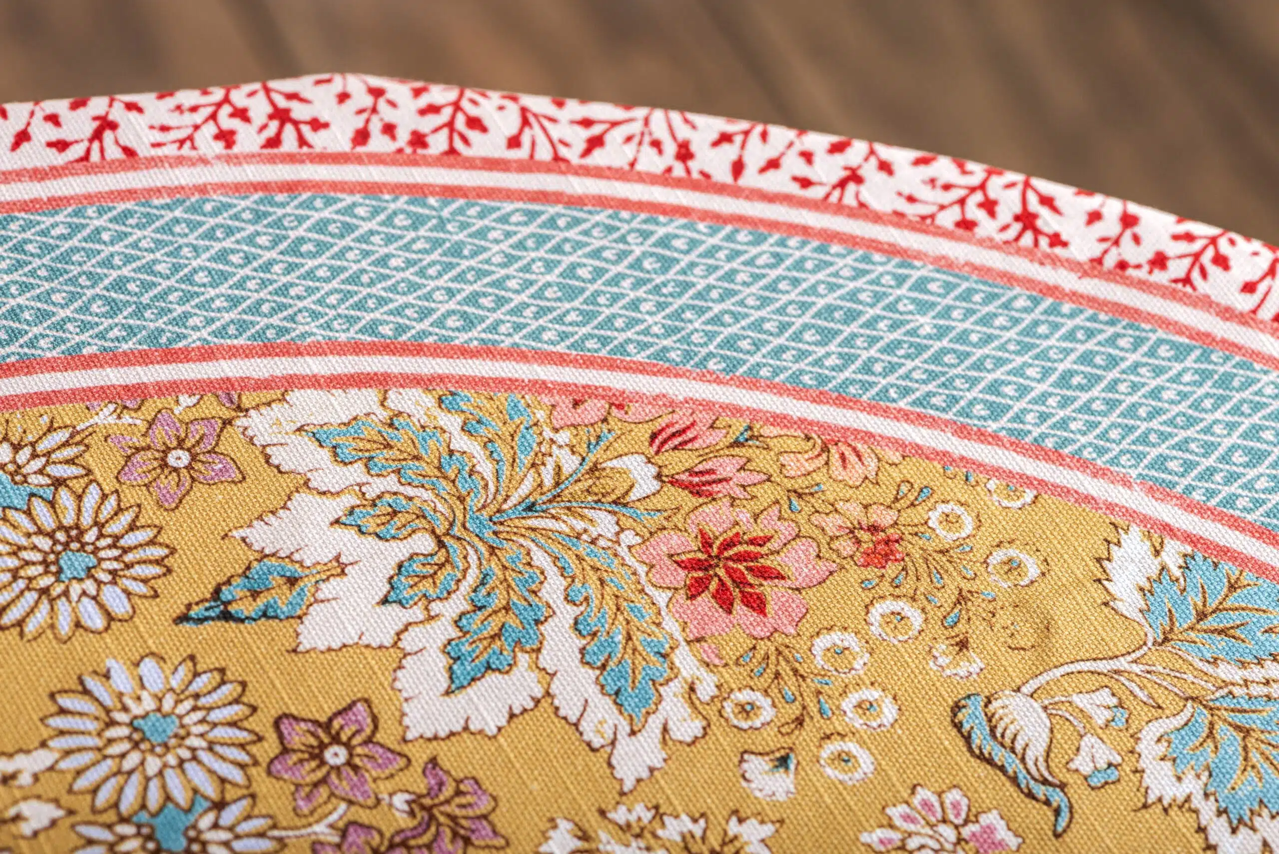 • Explore More: Discover our selection of coordinating round table linens, including aprons, napkins, and oven mitts, all in matching designs. Visit our store for additional round tablecloths and other stylish fabric tablecloths from Maison d’ Hermine to enhance your home décor.