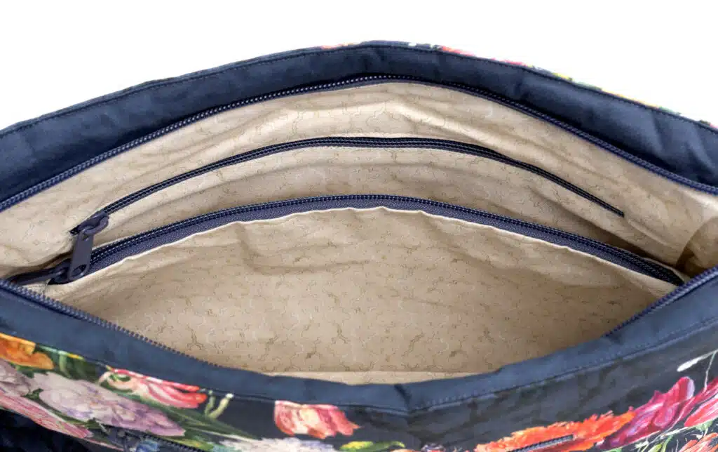 • Product Features: INTERIOR: Two slip pockets and a large zippered pocket. EXTERIOR: Zippered back pocket. Zip-top closure on main compartment.Features sturdy and durable YKK zippers throughout the bag.
