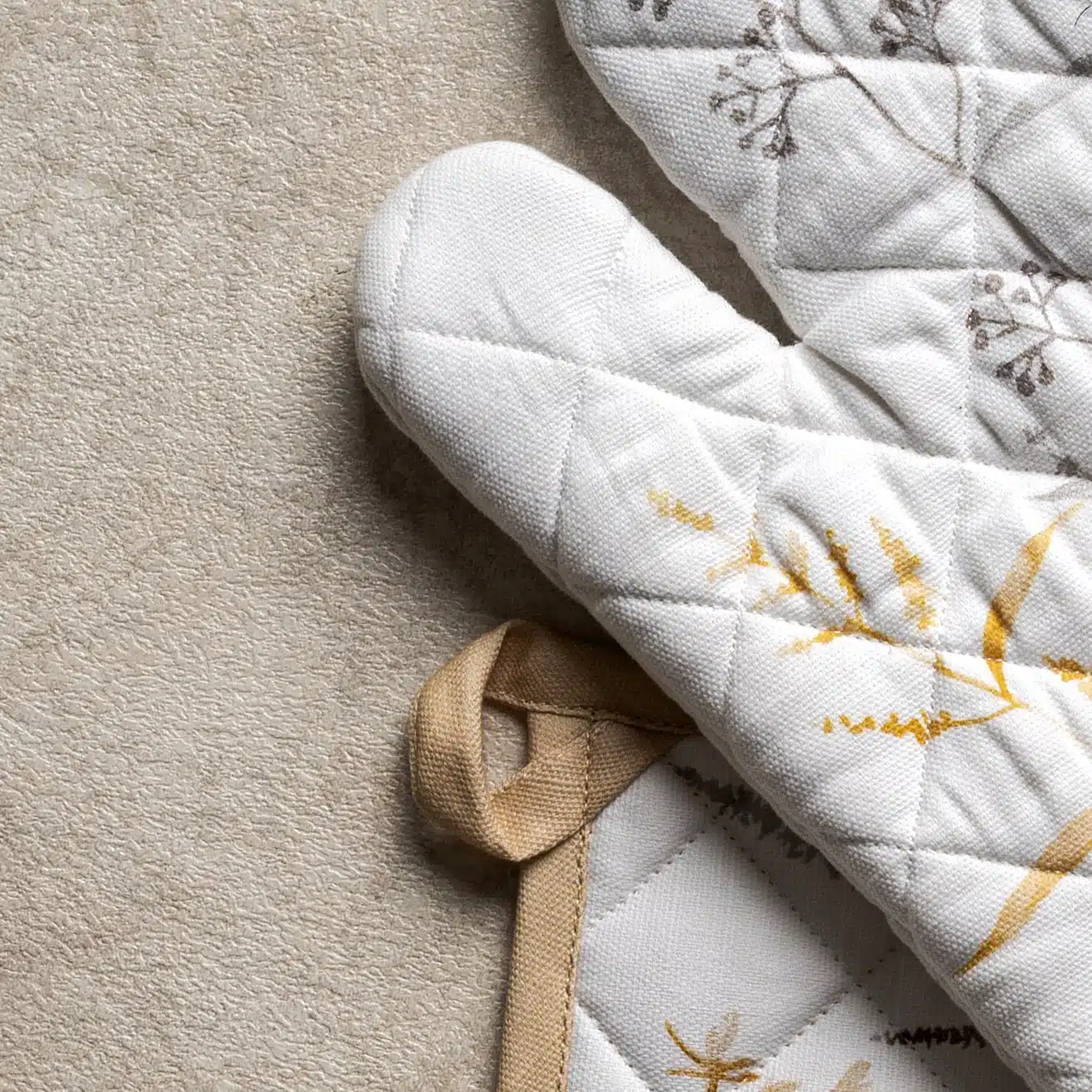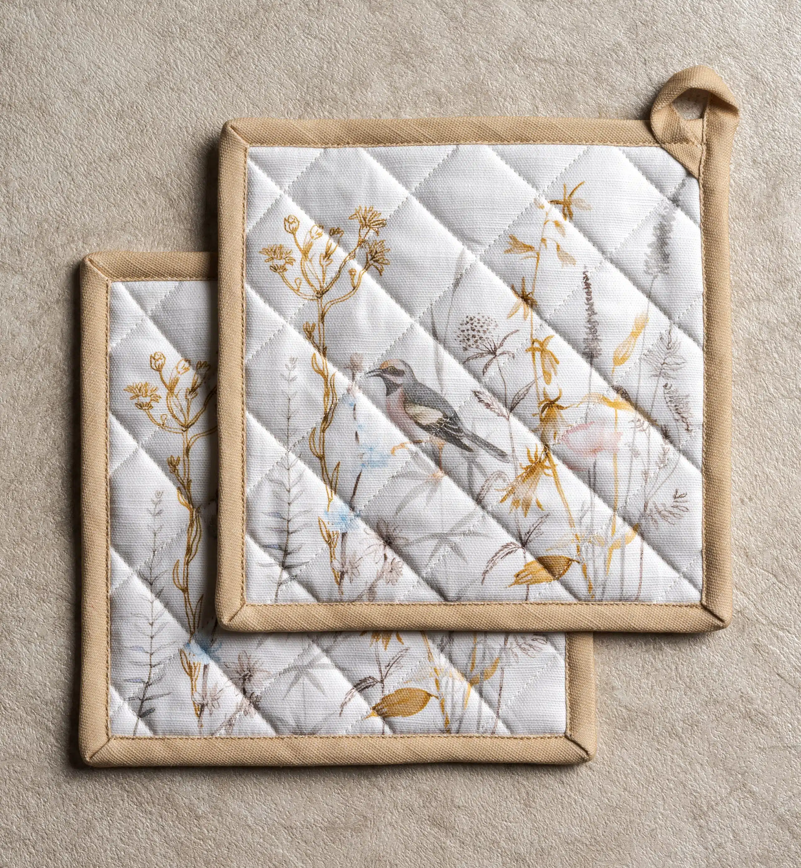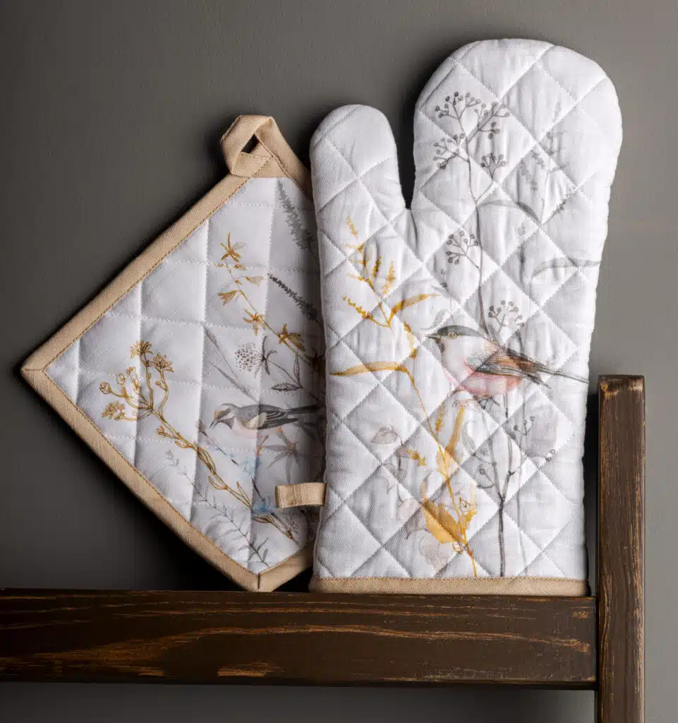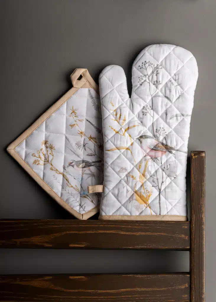 Meadow Florals Beige Glove & Potholder