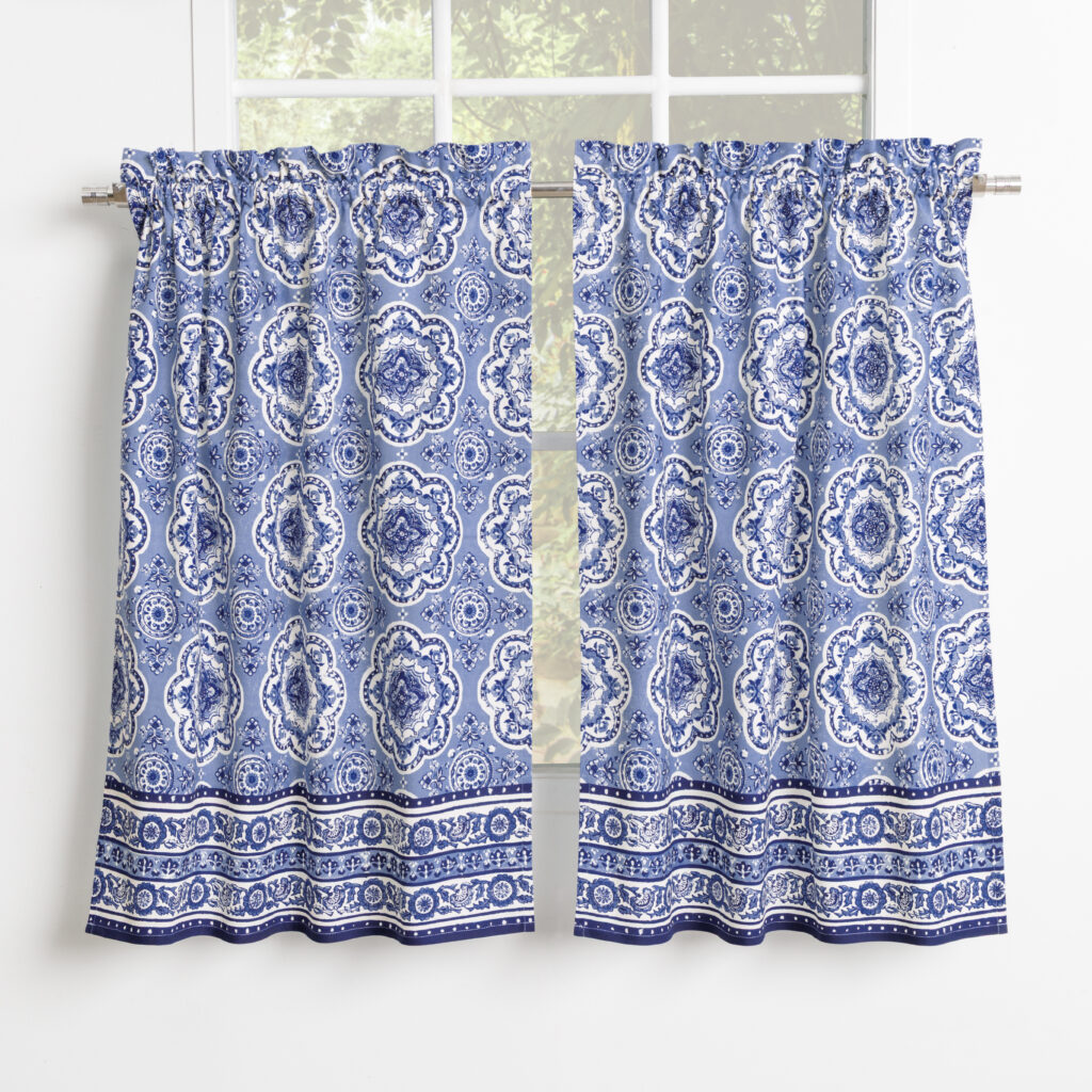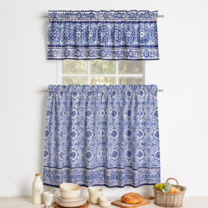 • Package Includes: 2 Tiers (28″x36″) and 1 Valance (56″x18″). Our Kitchen Curtain set brings style to your home that will add a touch of elegance at the same time being practical. Our products are Designed in Europe and Made in India.