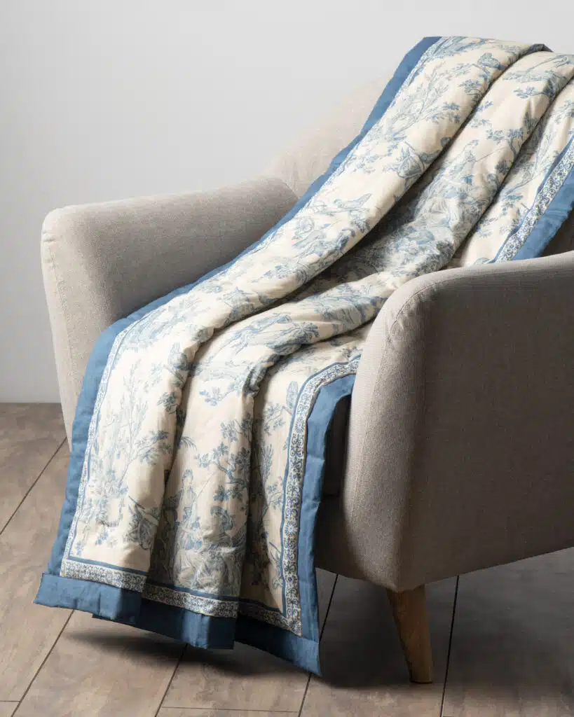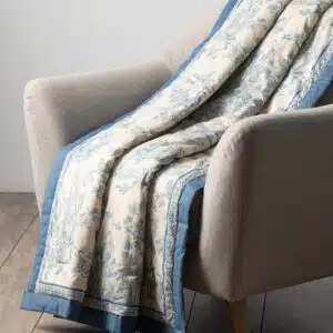 • Quality & Fabric:  The luxurious throw blanket’s outer fabric is made of high-quality 100% cotton, and the inner fabric is made of 100% polyester for durable use. They are lightweight and breathable and are almost as soft and warm as a wool blanket, which makes them a great alternative for people with sensitive skin.