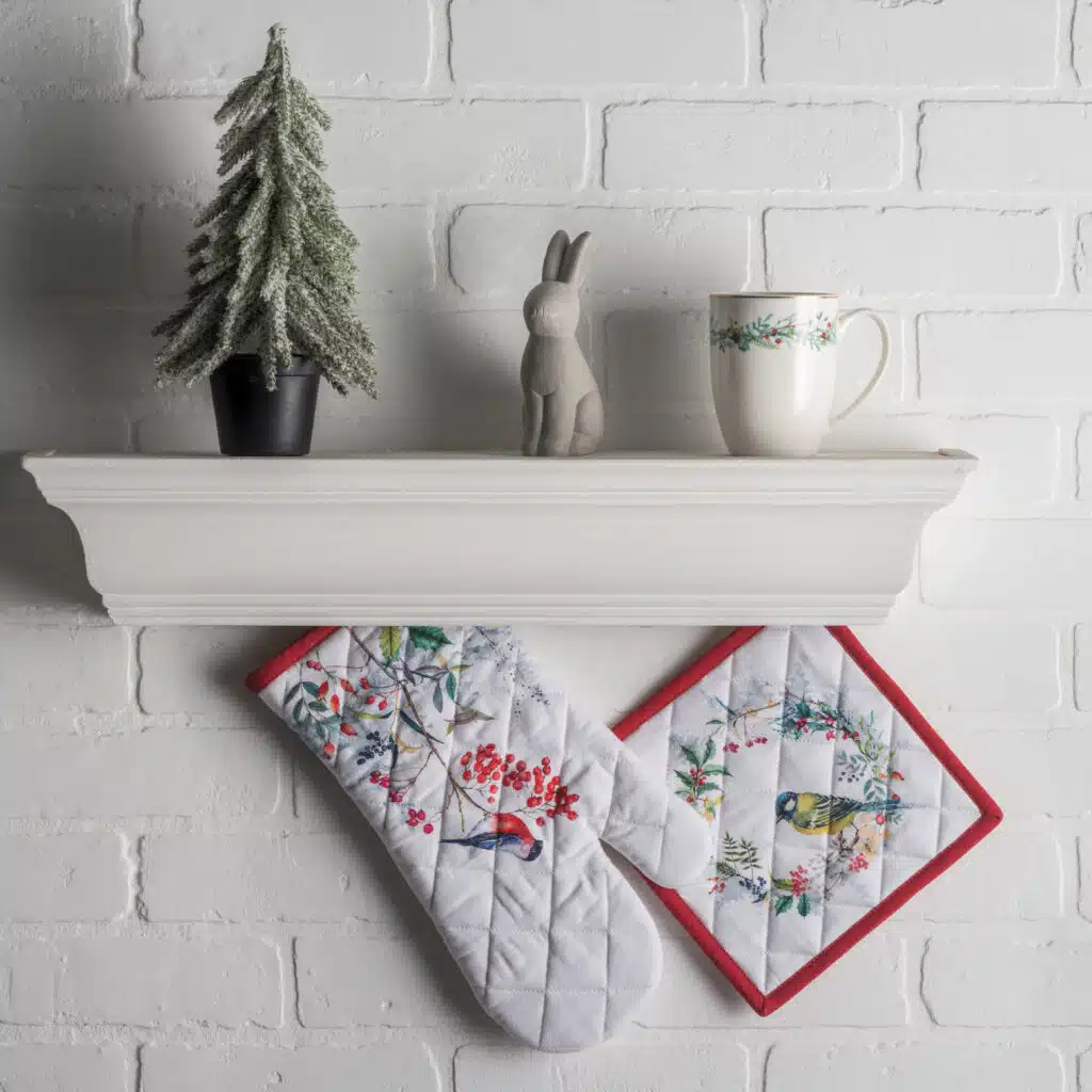 Package Includes: Maison d’ Hermine package includes 1 Oven Mitt sized 7.5″x13″ and 1 Pot Holder sized 8″x8″.