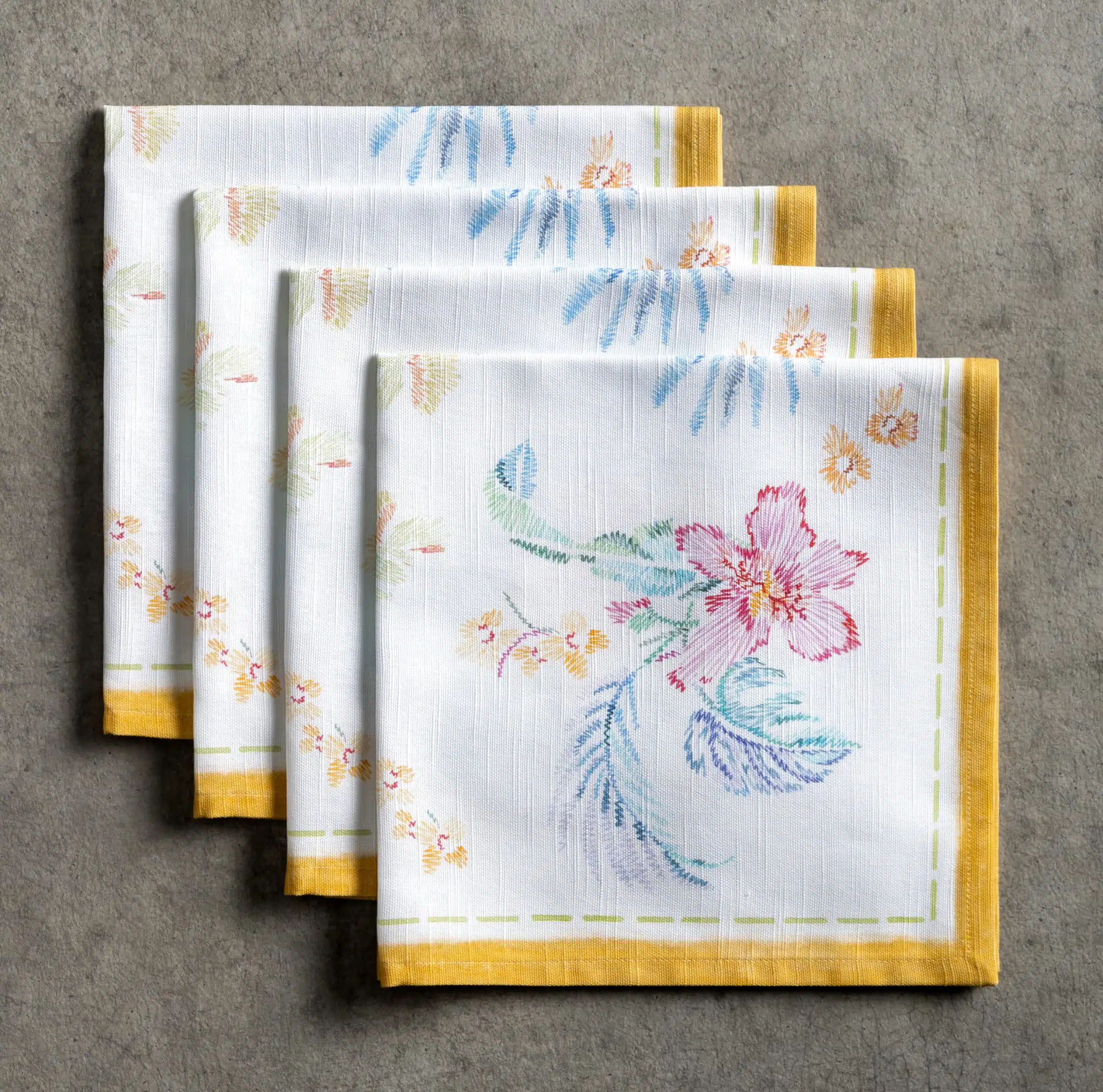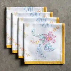 • Package Includes: Set of 4 Napkins sized 20″x20″. The napkins will certainly Bring lovely charm to your dining experience. Made with 100% Cotton fabric these dinner napkins are soft cloth napkins which provide a light but cozy feel to your dining table. Our products are Designed in Europe and Made in India.