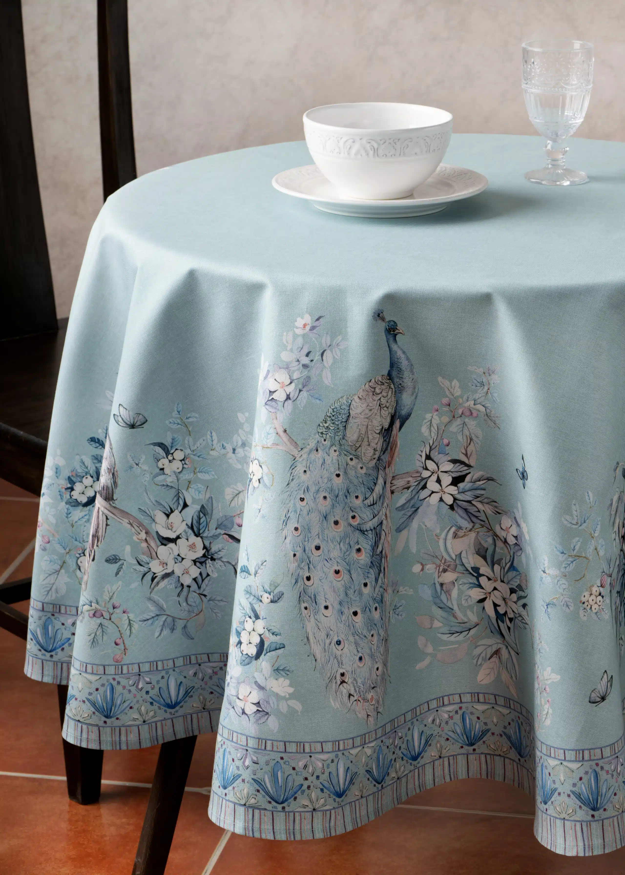 Peacock Utopia Pastel Turquoise Round Tablecloth