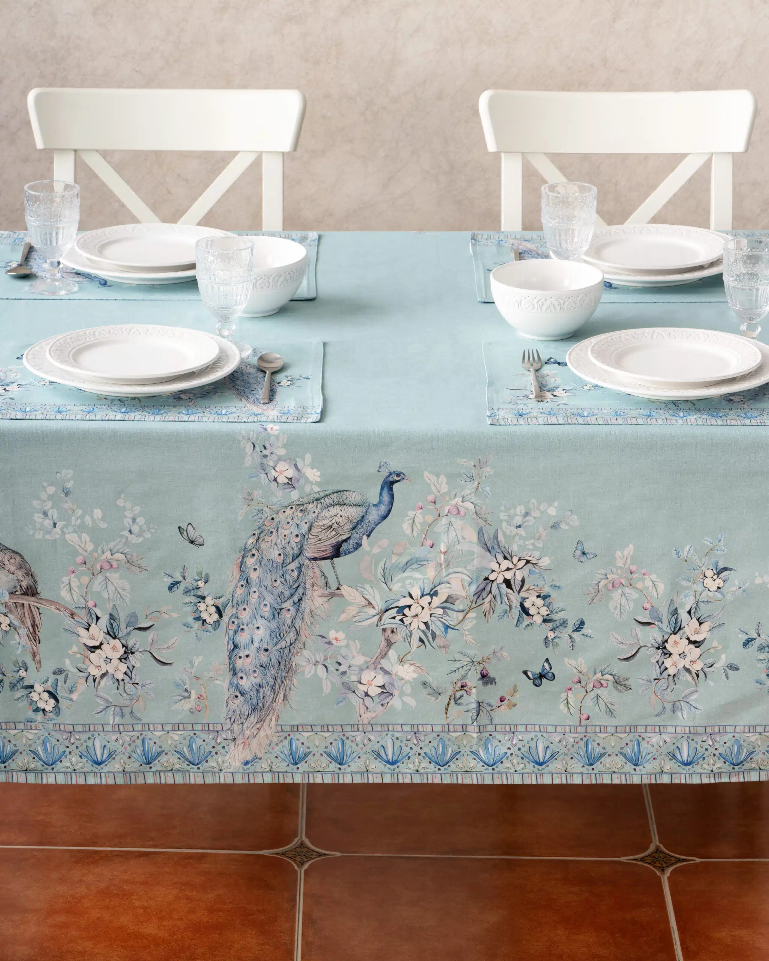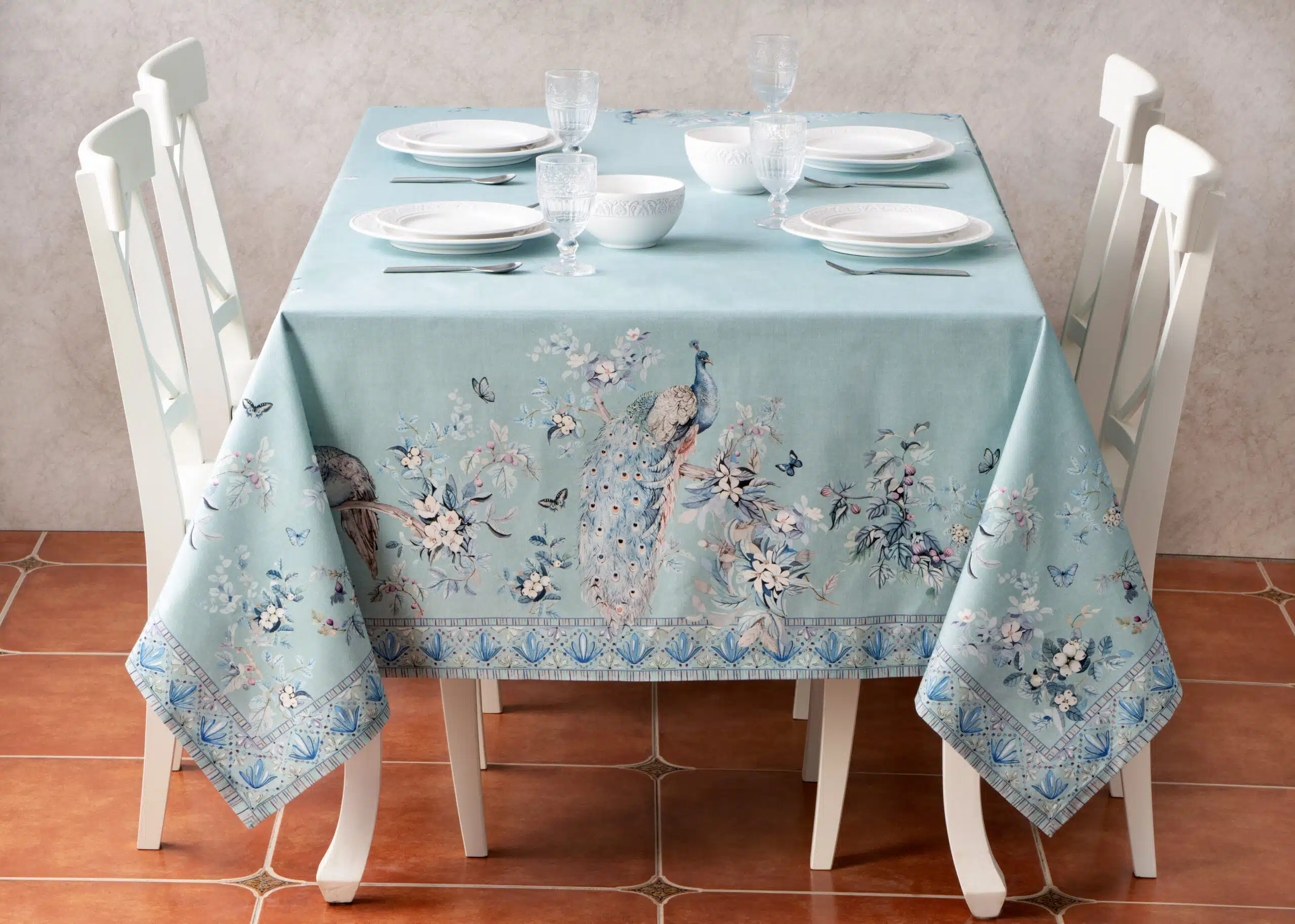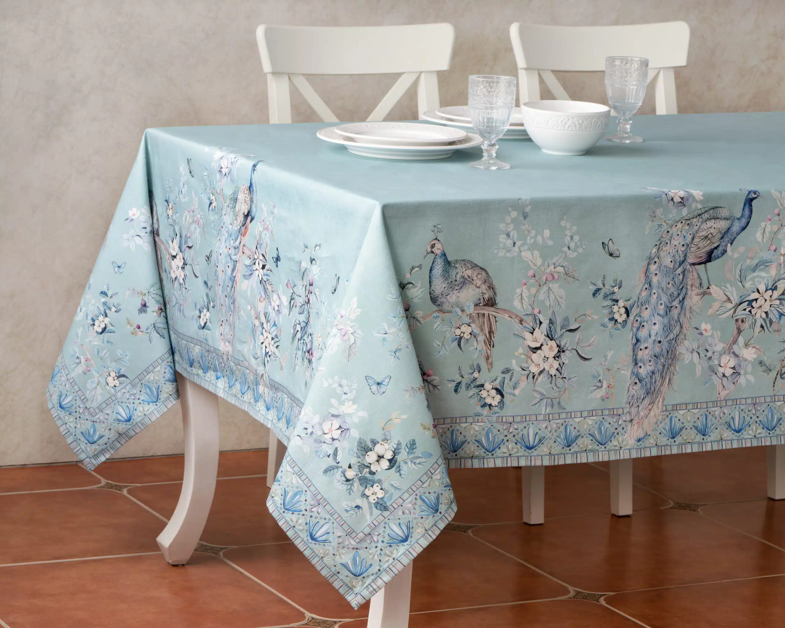 Peacock Utopia Pastel Turquoise Tablecloth