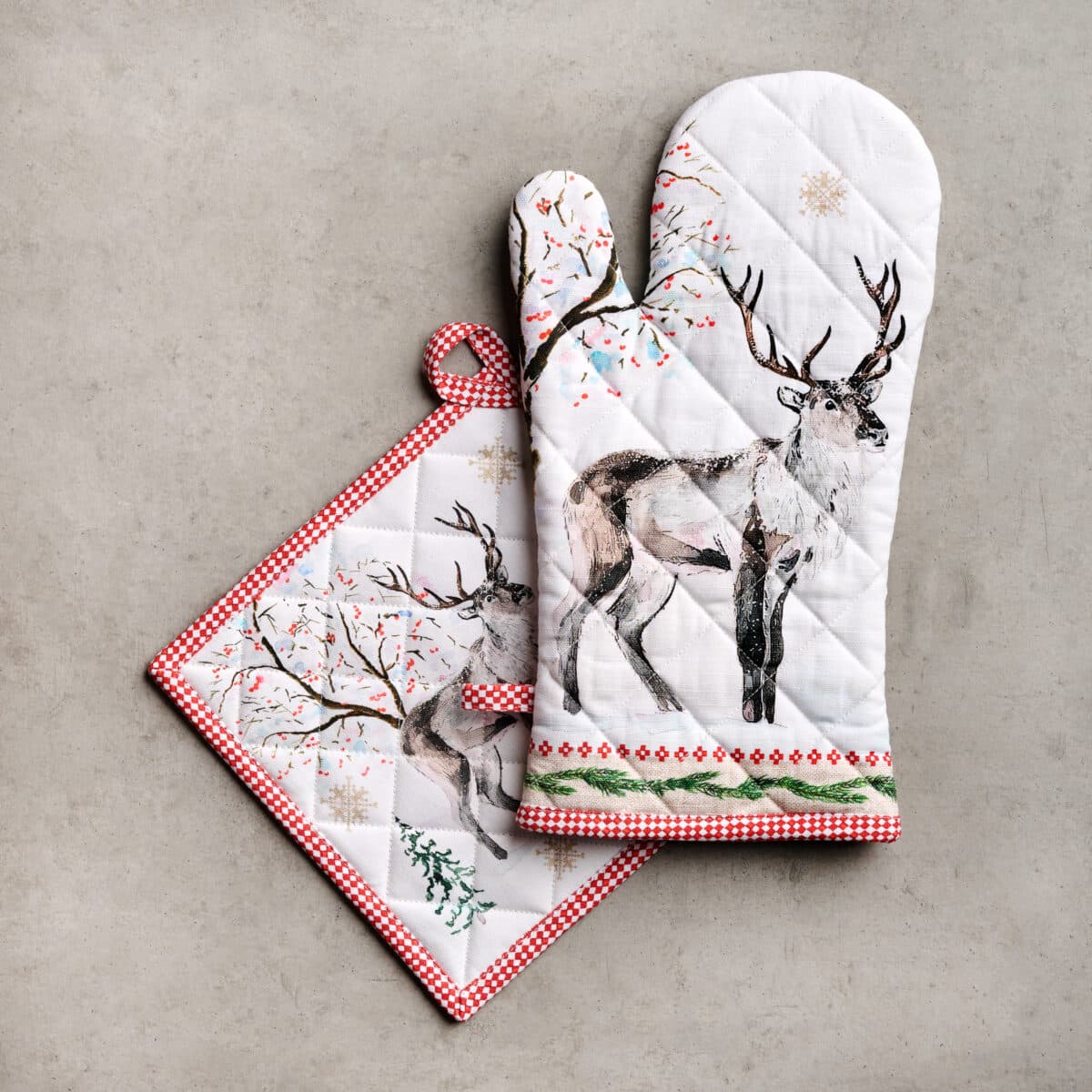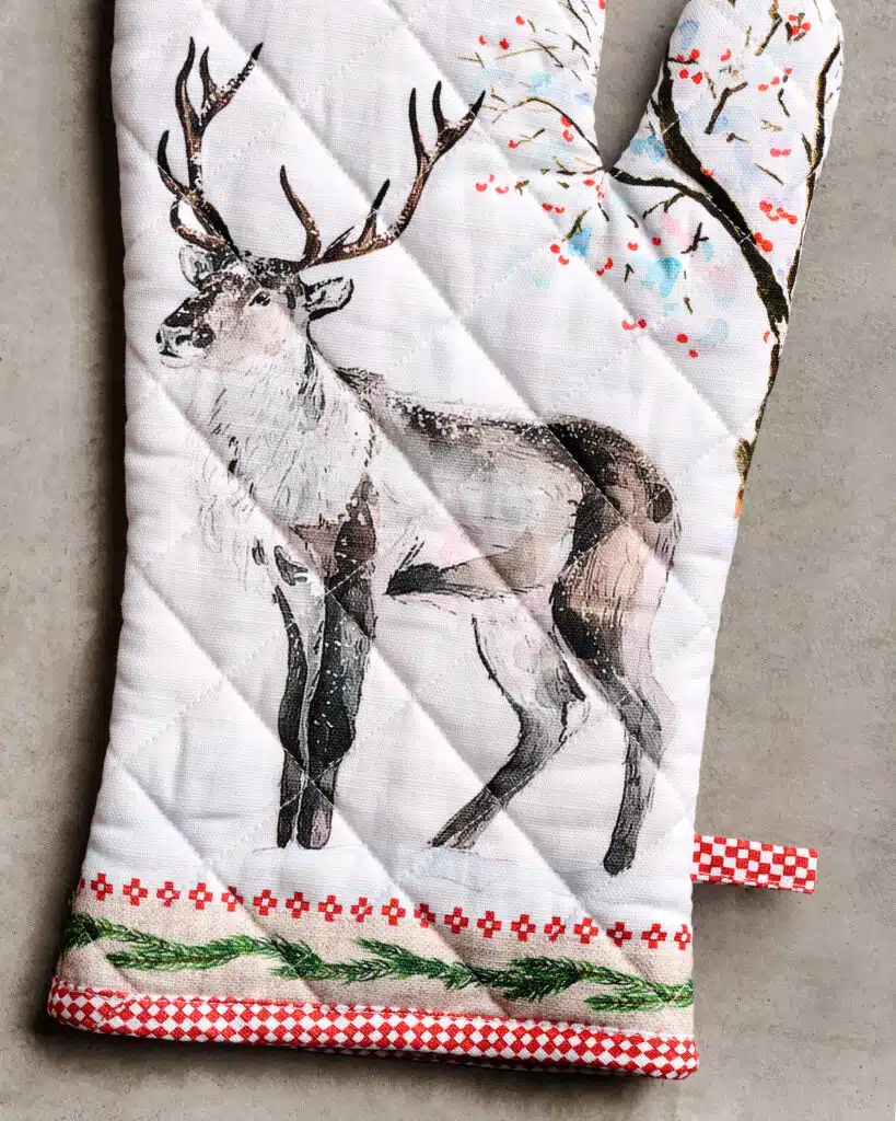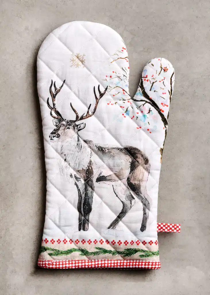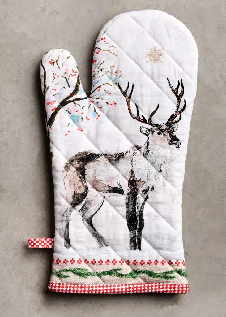 Package Includes: Maison d’ Hermine package includes 1 Oven Mitt sized 7.5″x13″ and 1 Pot Holder sized 8″x8″.