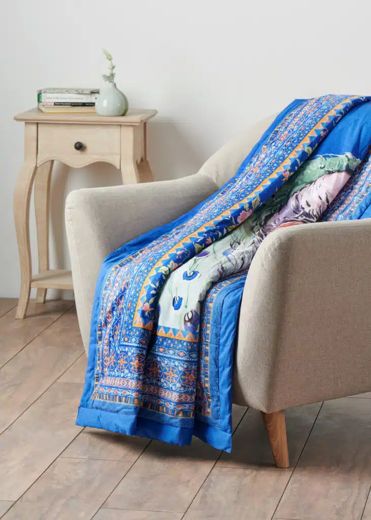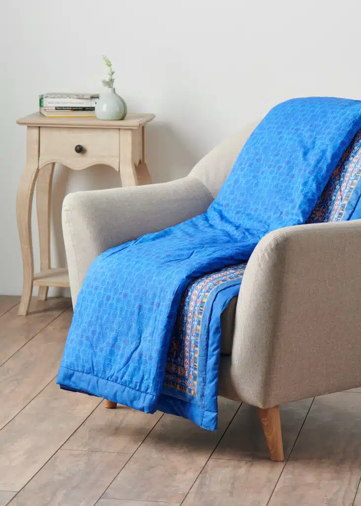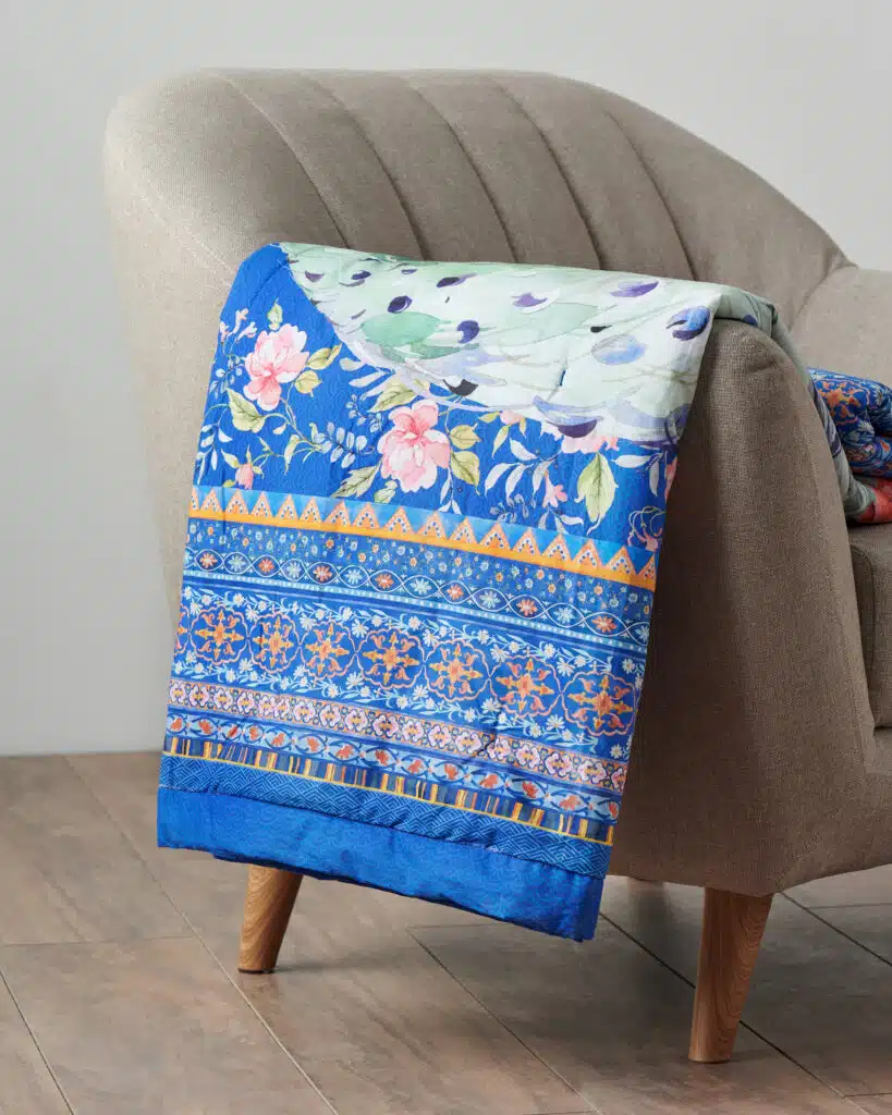 • Quality & Fabric:  The luxurious throw blanket’s outer fabric is made of high-quality 100% cotton, and the inner fabric is made of 100% polyester for durable use. They are lightweight and breathable and are almost as soft and warm as a wool blanket, which makes them a great alternative for people with sensitive skin.