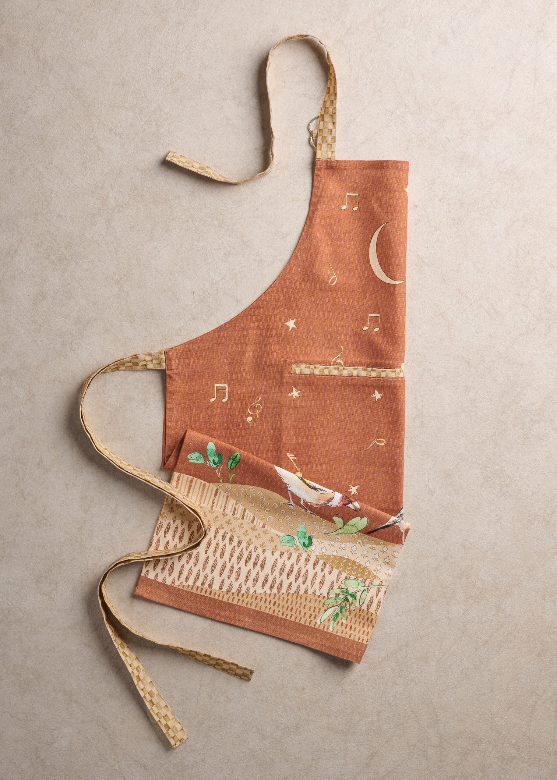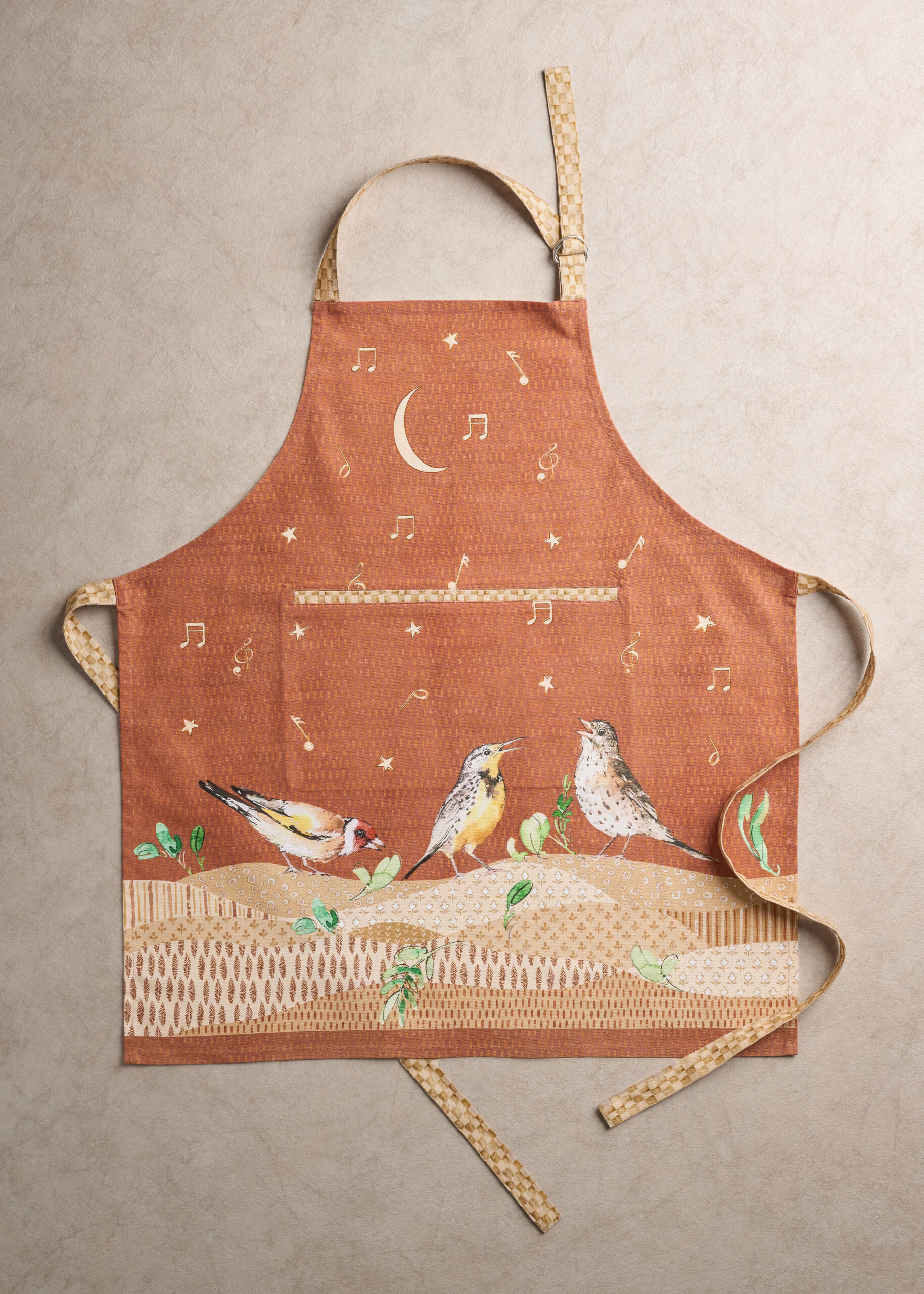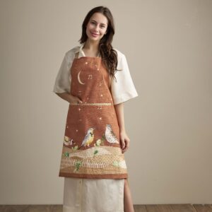 • Package Includes: 1 Apron with the long waist ties and an adjustable neck strap. Our kitchen apron has pockets in the centre which can give you enough place to hold grill slips, recipe, phone etc. Made from 100% cotton, each apron in this collection is just as elegant and charming it can be and brings out the spirit of the warm season in an artsy way. Our products are Designed in Europe and Made in India.