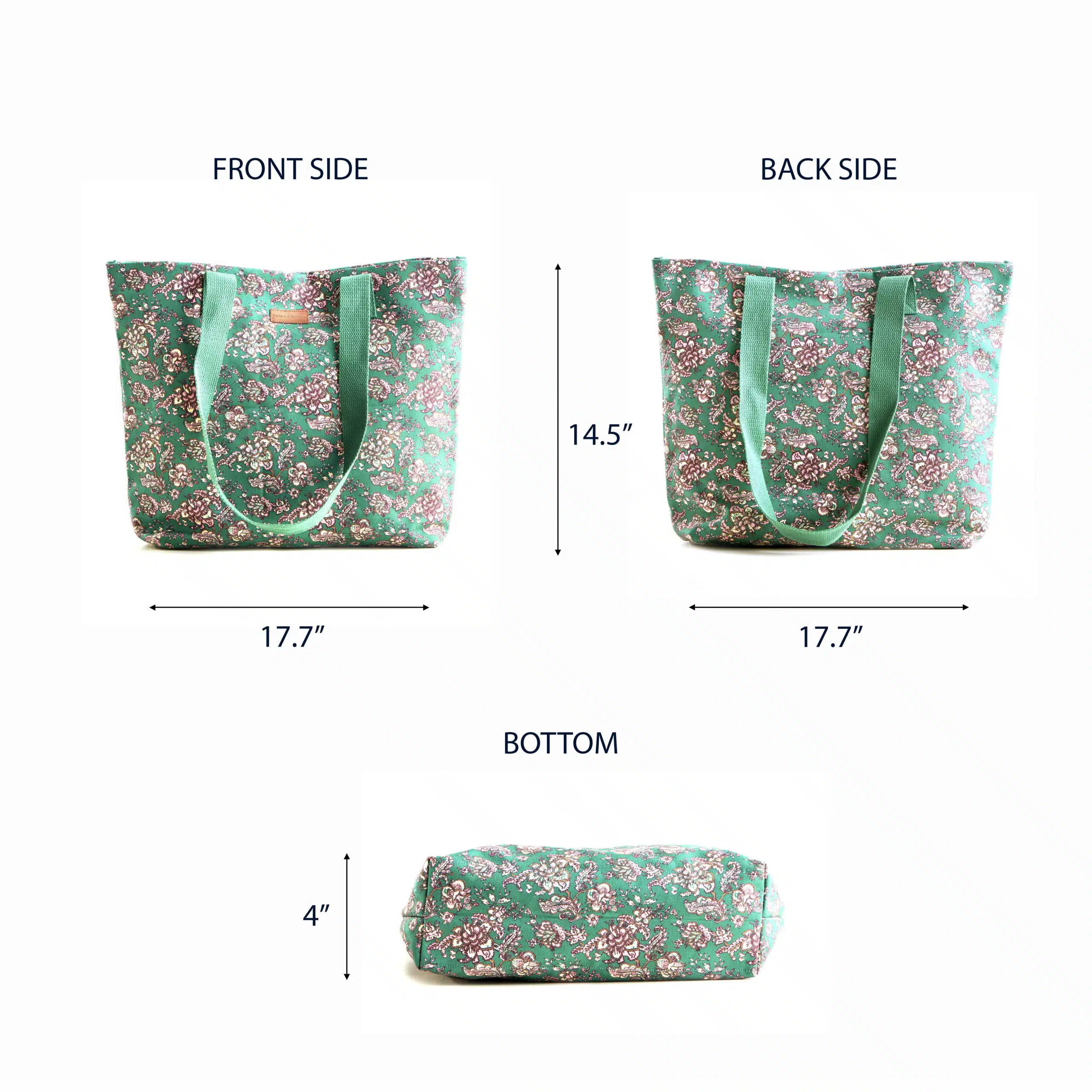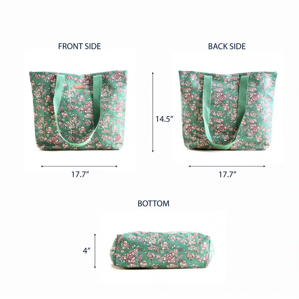• Package Includes: 1 canvas tote bag made of 100% cotton measures Length – 17.7 Inch Height – 14.5 Inch, Width – 4 Inch.