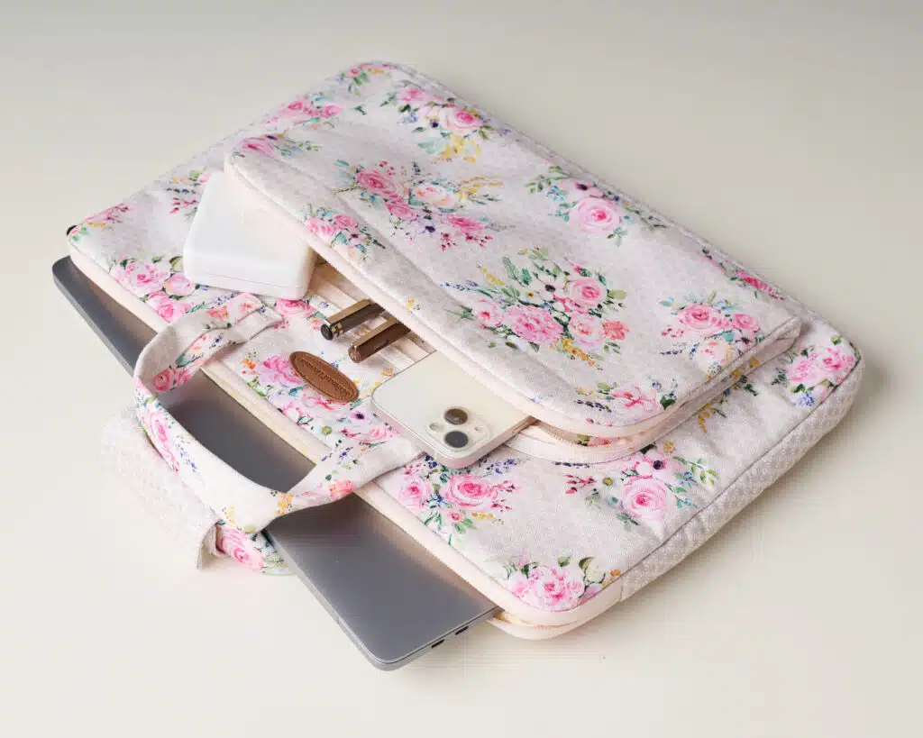 Sweet Rose Lavender Laptop Bag with Pocket