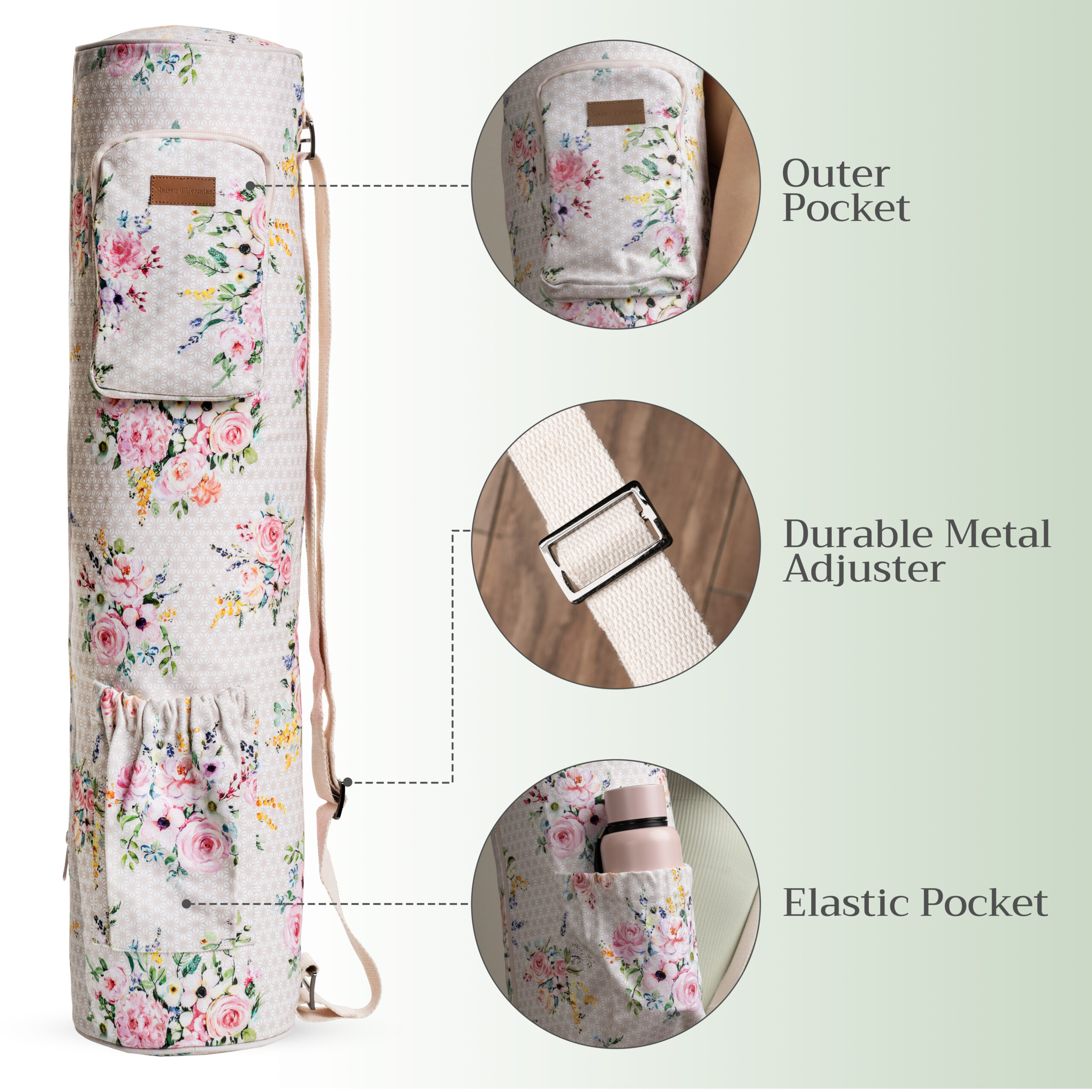 • Unique Designs: Express your personal style with our range of signature Maison d’Hermine designs. From pretty florals to bold prints in vibrant colors, there’s a yoga mat bag to match your look. Functional and fashionable, this bag is your new workout essential