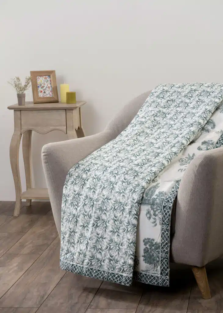 • Quality & Fabric:  The luxurious throw blanket’s outer fabric is made of high-quality 100% cotton, and the inner fabric is made of 100% polyester for durable use. They are lightweight and breathable and are almost as soft and warm as a wool blanket, which makes them a great alternative for people with sensitive skin.