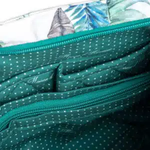 • Product Features: INTERIOR: Two slip pockets and a large zippered pocket. EXTERIOR: Zippered back pocket. Zip-top closure on main compartment.Features sturdy and durable YKK zippers throughout the bag.
